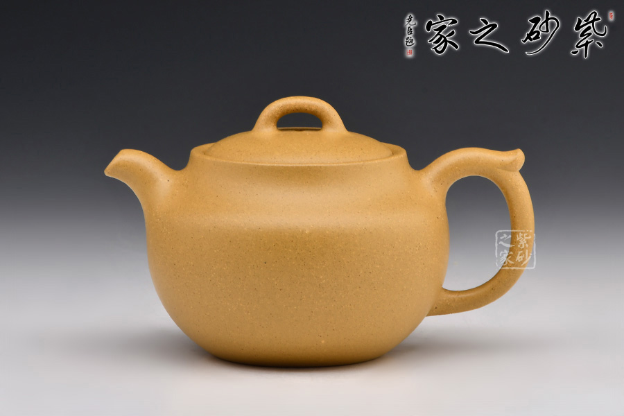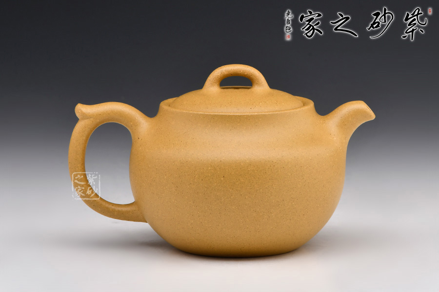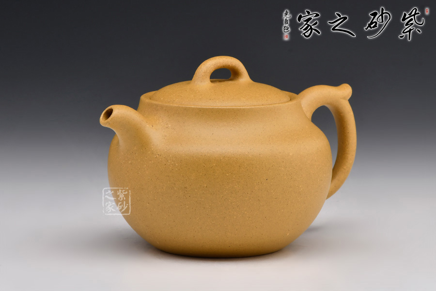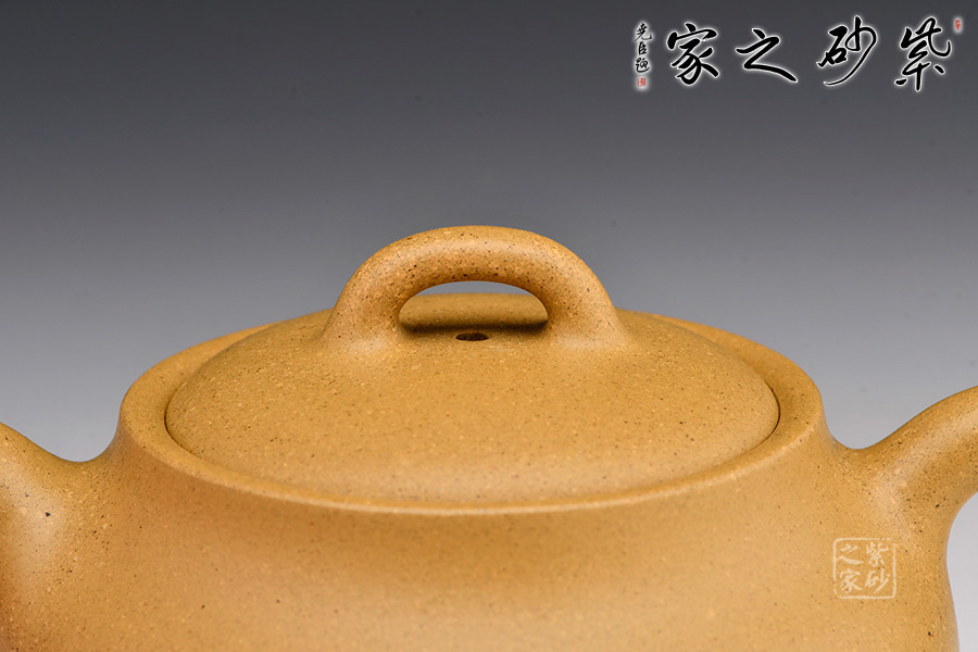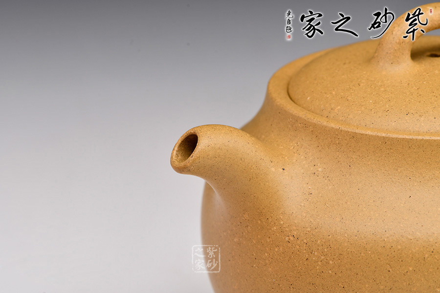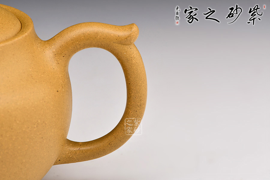 此壺器形飽滿,壺身飽滿圓潤至極,撫之極為貼合,觸手生溫;嵌蓋設計,壺蓋隆起,壺蓋與壺身一般似球形,壺底與壺口相一致,壺鈕精巧別致,彎流嘴銜接無痕,嘴口圓潤,出水爽利;耳形端把曲線流轉隨壺身之勢,與壺嘴遙相呼應,持握舒適。