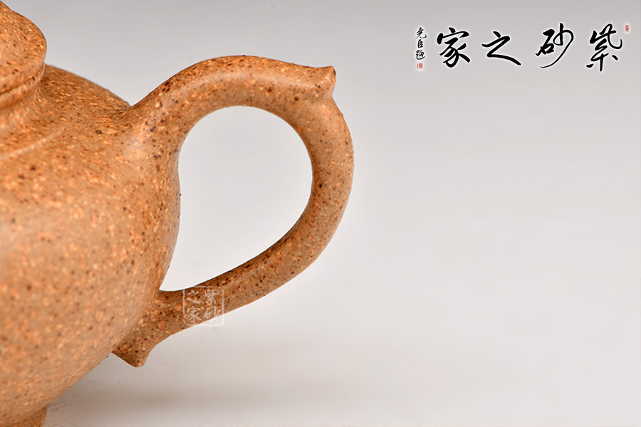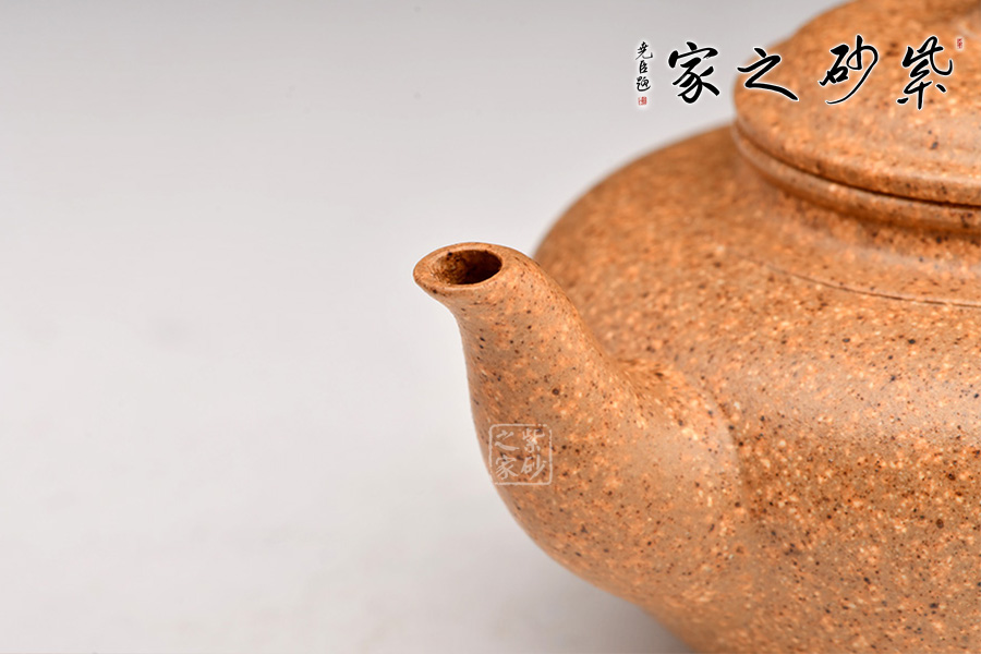 笑櫻壺是紫砂壺經(jīng)典款式,其壺身圓潤飽滿,又不失雅韻之美。笑櫻壺的特點:壺型由上至下漸收斂至圈足,壺底有一圓盤接底,增添了整個壺的穩(wěn)重之感;壺鈕塑造成了一個花苞尖的形象,精致小巧;壺蓋拱圓,和壺口嚴密結(jié)合,弧度齊整;豐肩束頸,平口出唇;云肩線清晰、爽利、大氣;三彎流的設(shè)計形如飛鳥,甚是優(yōu)美,將“笑櫻壺”的張力展現(xiàn)得淋漓盡致,且出水好;壺柄為飛把,耳形向上飛揚。