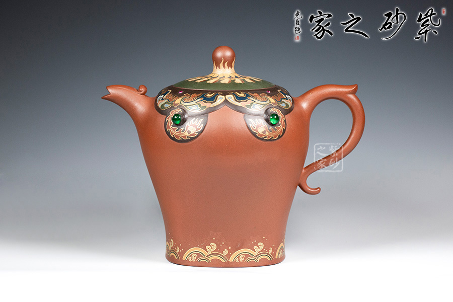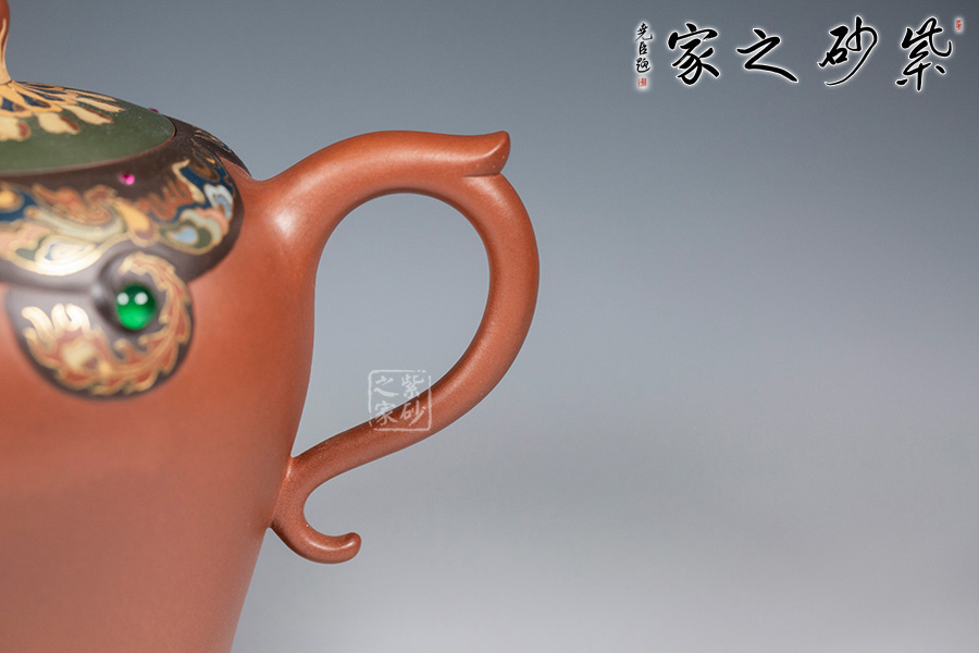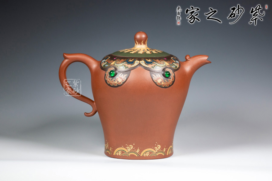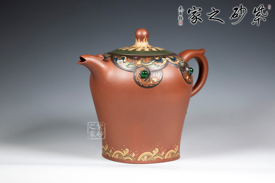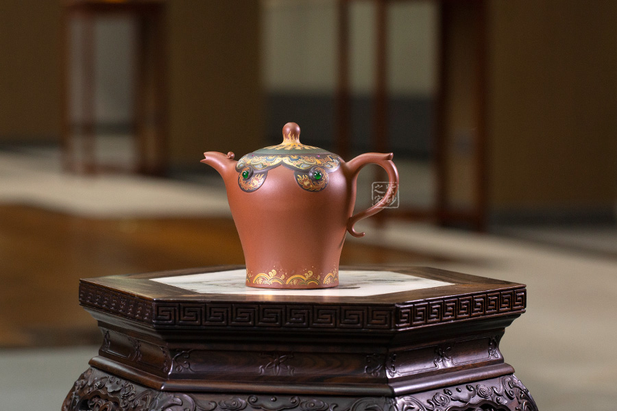 近年來,季益順手中的一捧泥,是他對中國千年歷史的感悟,《心心向陽》,《百寶壺》,《玉金砂》等系列作品的推出,憑借金絲鑲嵌與五色土填充,以及古代寶石鑲嵌復雜技藝,不僅提升紫砂壺的雍容華貴之感,更讓其作品物超所值,珠光寶氣,讓作品價值的體現更多的是因為其本身的工藝與創(chuàng)意。