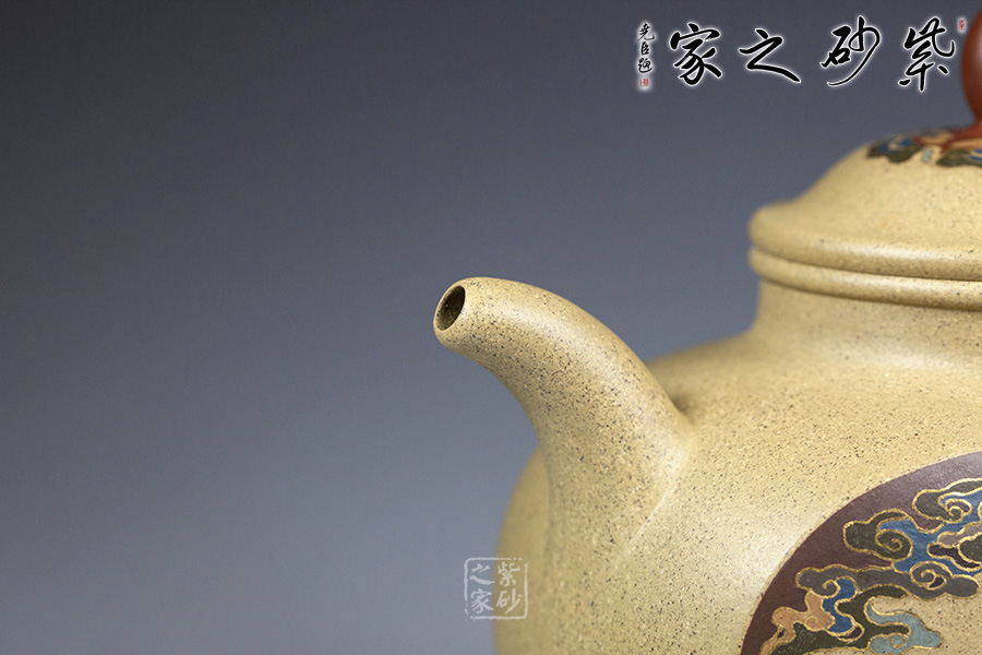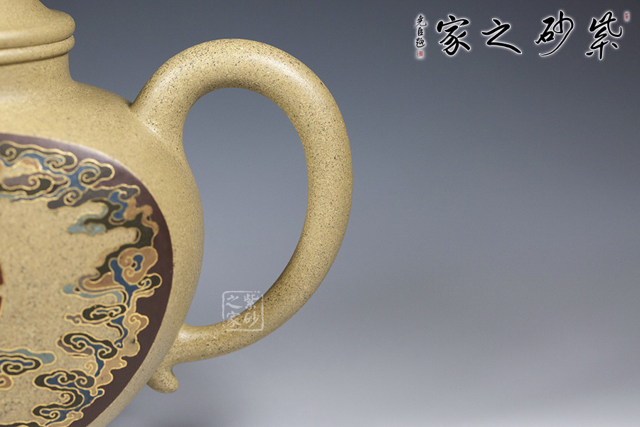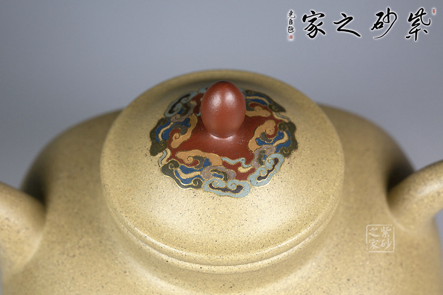 泥性:感甜嫩綿密,質(zhì)堅(jiān)而溫潤,呈近田黃色調(diào),為江蘇宜興趙莊山系朱泥礦~黃石黃之共生礦,經(jīng)挑揀練製而成,因含鐵量只達(dá)6%左右,致陶之后呈“金田黃色”。