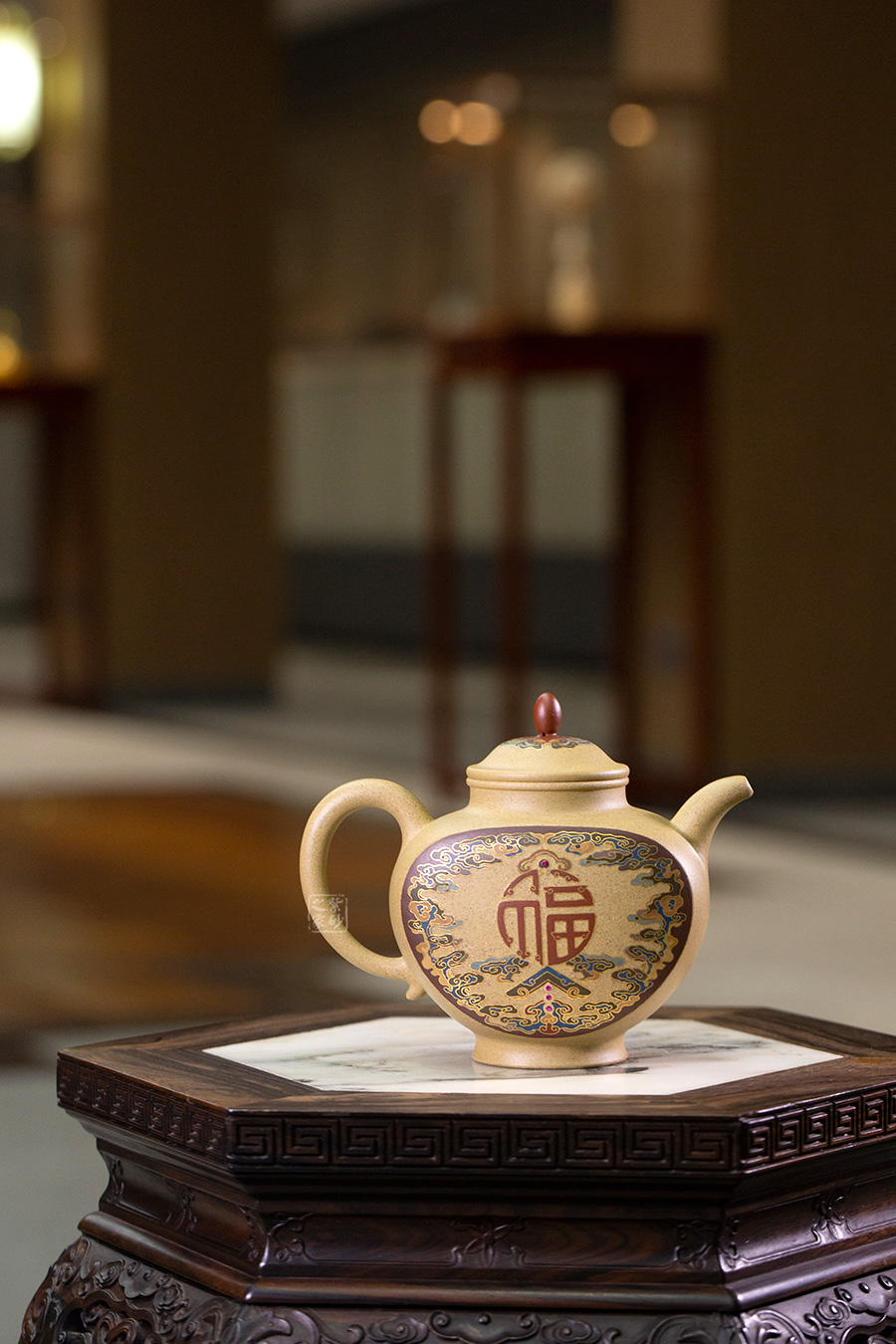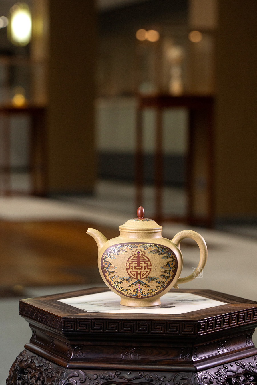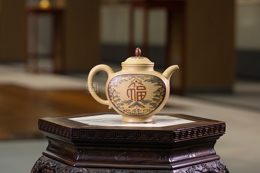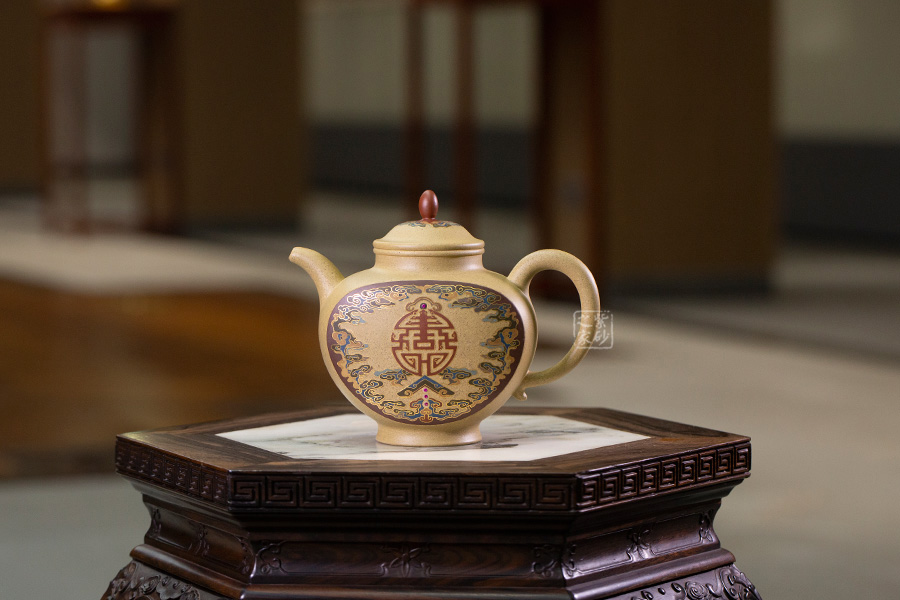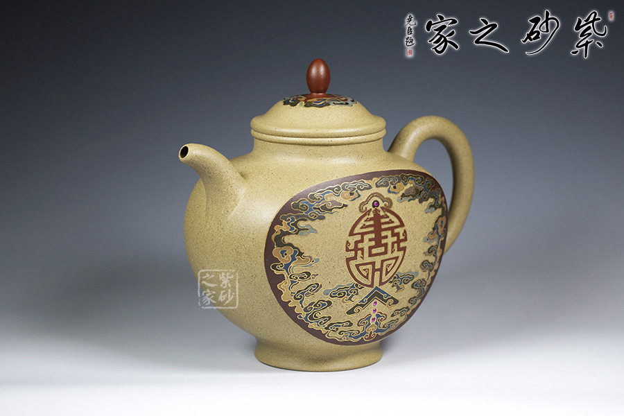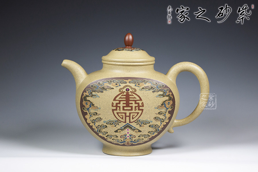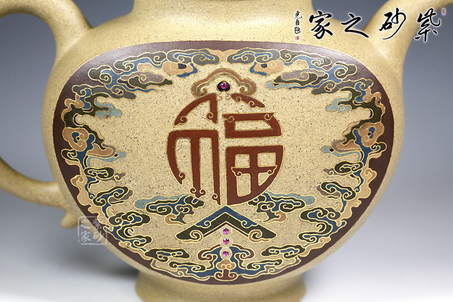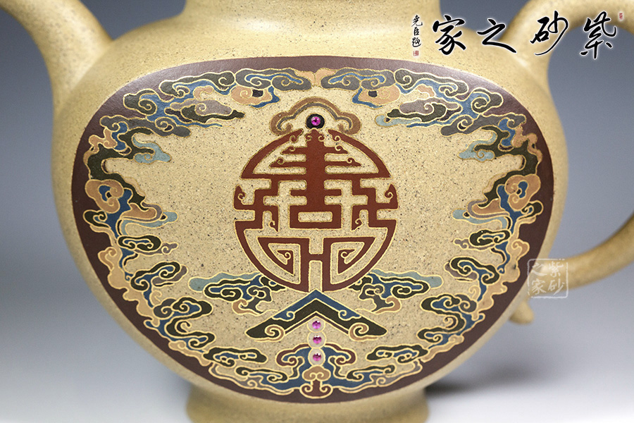 近年來,季益順手中的一捧泥,是他對中國千年歷史的感悟,《心心向陽》,《百寶壺》,《玉金砂》等系列作品的推出,憑借金絲鑲嵌與五色土填充,以及古代寶石鑲嵌復(fù)雜技藝,不僅提升紫砂壺的雍容華貴之感,更讓其作品物超所值,珠光寶氣,讓作品價(jià)值的體現(xiàn)更多的是因?yàn)槠浔旧淼墓に嚺c創(chuàng)意。