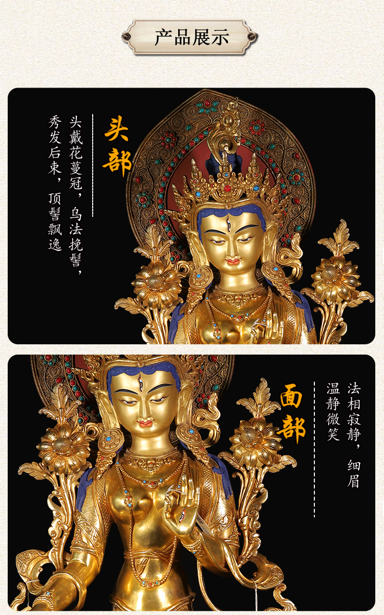 尼泊爾紫銅鎏金白度母銅像家用擺件50cm佛堂擺設(shè)