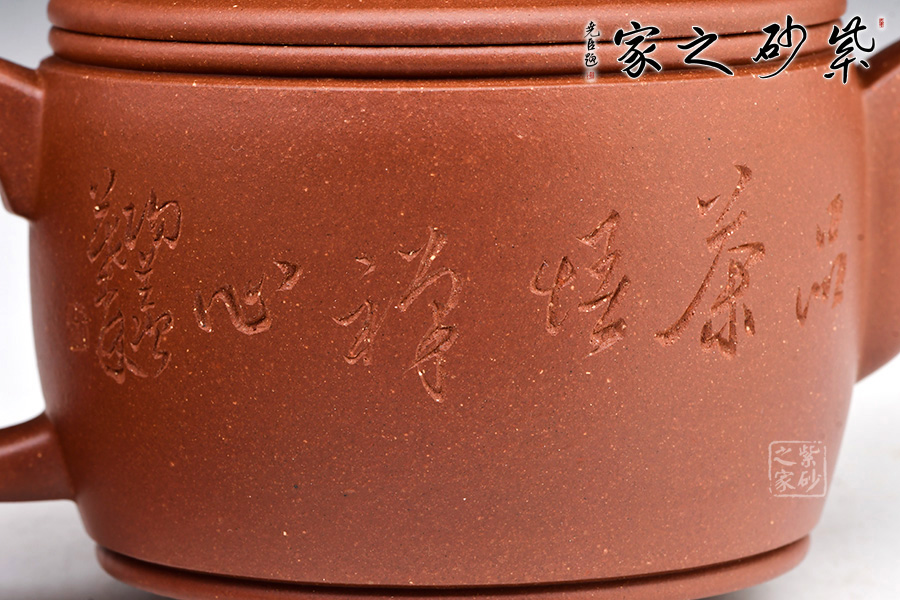 漢瓦是一種經(jīng)典的紫砂壺型,深受壺友收藏家們的喜歡。作品器形簡單古樸,紫棕色澤,整體呈圓筒型,平蓋橋鈕設計,彎嘴出水流暢,耳型端把,拿捏舒適。壺鈕、壺蓋連接處壓平,看似隨意操作實則更顯穩(wěn)重。