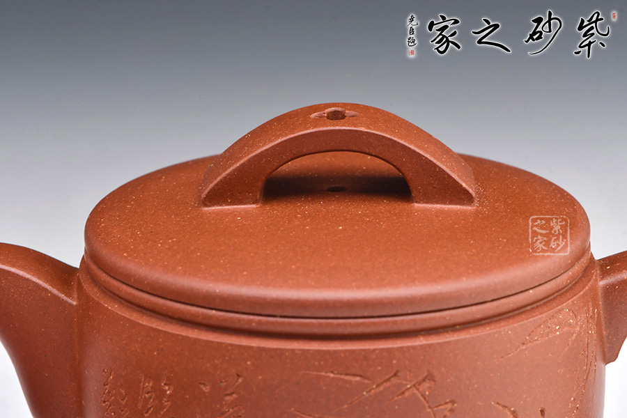 漢瓦是一種經(jīng)典的紫砂壺型,深受壺友收藏家們的喜歡。作品器形簡單古樸,紫棕色澤,整體呈圓筒型,平蓋橋鈕設計,彎嘴出水流暢,耳型端把,拿捏舒適。壺鈕、壺蓋連接處壓平,看似隨意操作實則更顯穩(wěn)重。