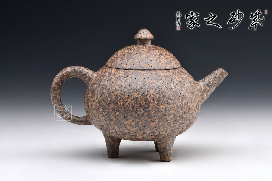 此壺取明代時大彬的大彬如意之型,結(jié)合清代吳月亭的三足鼎爐創(chuàng)制而成,《三足爐壺》,保留了時大彬《大彬如意》中事事如意和三足鼎立的寓意,通過改變?nèi)愕母叨?,使得壺身更加穩(wěn)重。