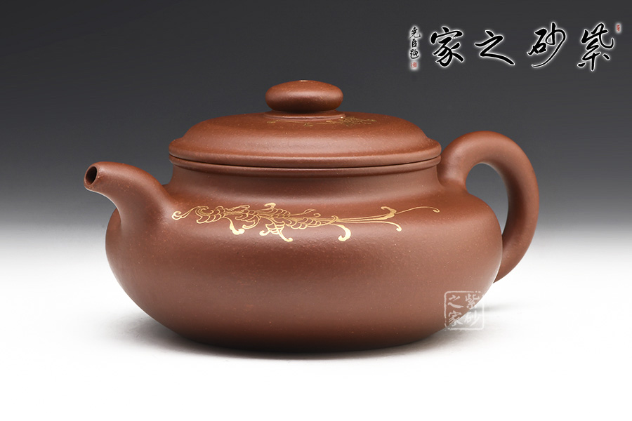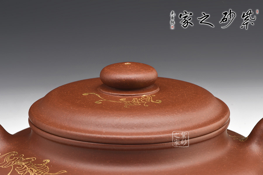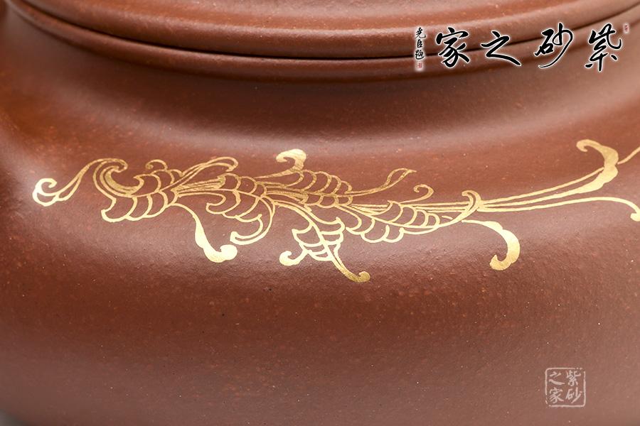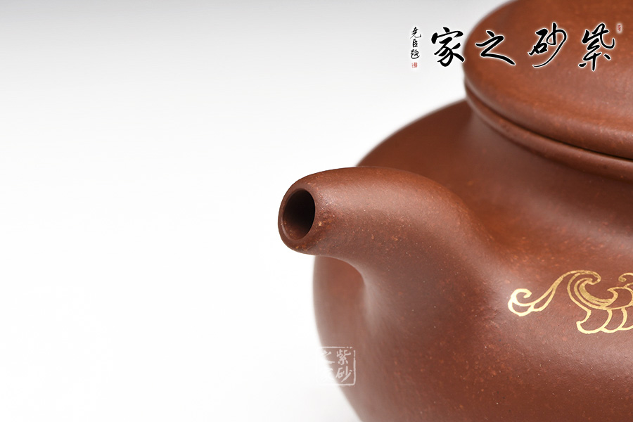 此壺經(jīng)典大氣,穩(wěn)重敦實(shí)。壺蓋微鼓,口蓋子母線咬合緊密,氣密性極好。大口蓋更實(shí)用,茶葉進(jìn)出方便。壺身描金裝飾,清麗脫俗,意韻自然令人愛不釋手,愛壺的您千萬不可錯(cuò)過。