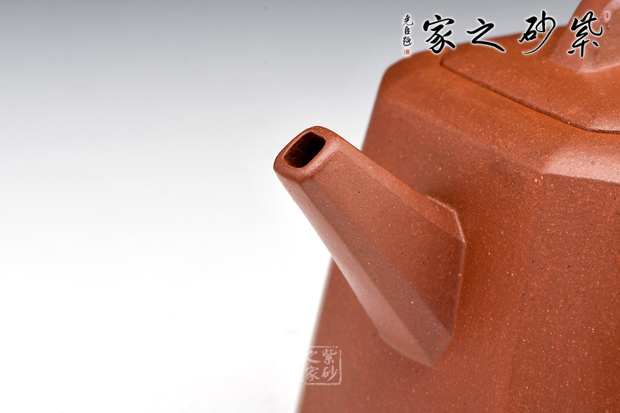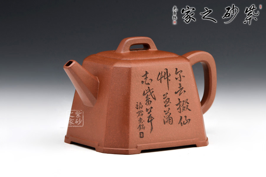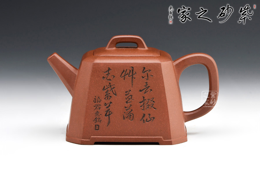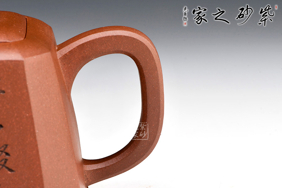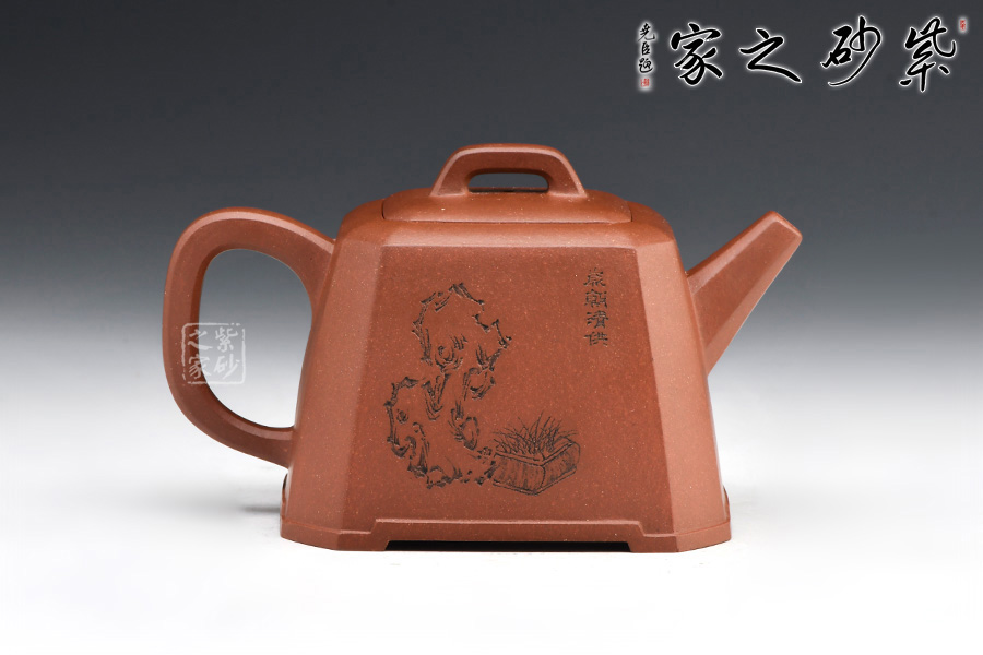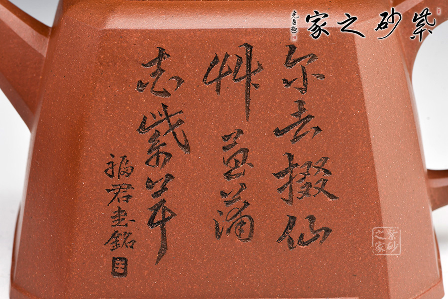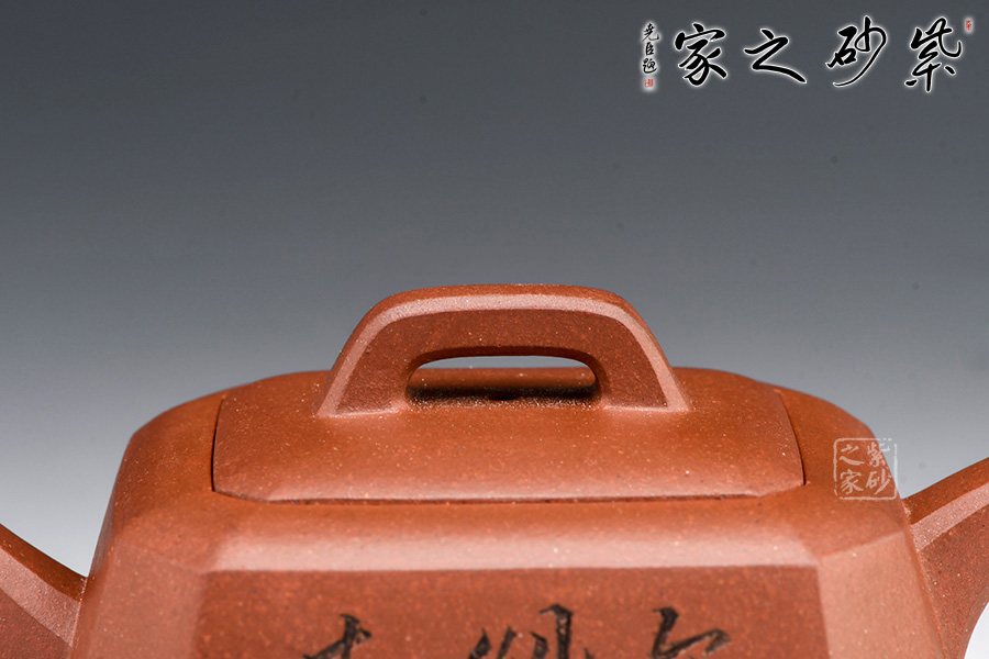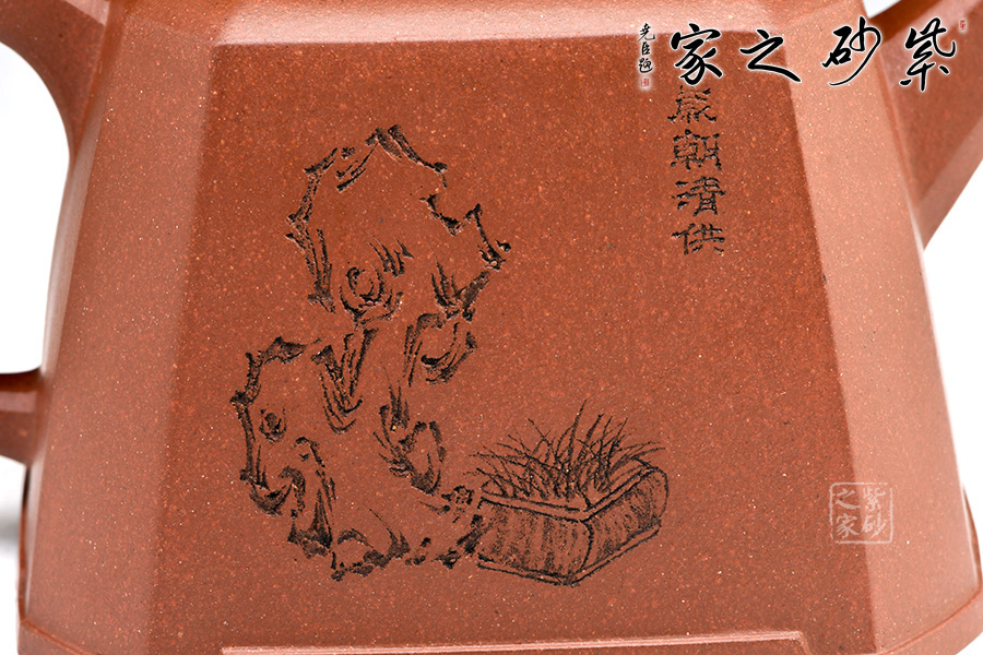 身體呈方壺之型,各部比例協(xié)調(diào)。線面挺括,輪廓分明。將直線與弧線巧妙結(jié)合,使壺方中帶圓,優(yōu)雅而悅目的造型給人古拙之感。