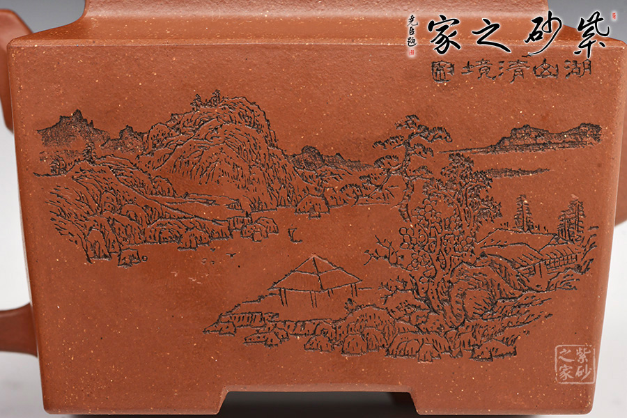 通觀此壺,比例協(xié)調(diào)、搭配合理,加以陳宏林大師的山水書畫裝飾,更加突顯整器挺拔的氣質(zhì),使得整壺有方正古雅、氣勢雄渾之非凡氣度。