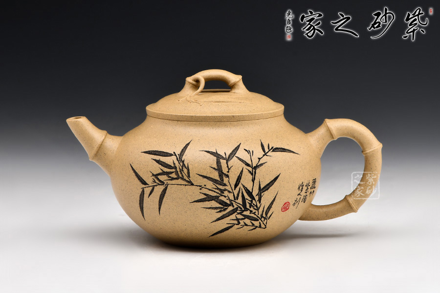壺身圓潤光滑,滑肩,壓蓋。整體器型是簡單的,但是因為有了竹,增添了百折不彎,堅韌不拔的內(nèi)蘊(yùn)。
