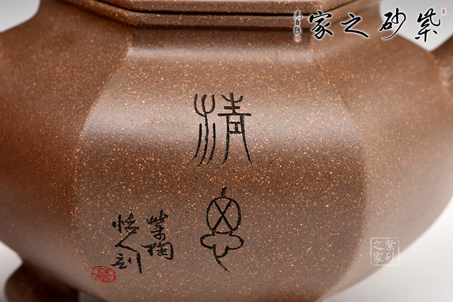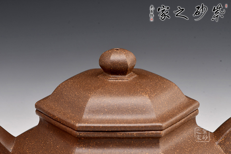 六方水平壺,寶蓋隆起,壺腹圓鼓卻可見(jiàn)弧度,功法到位??谏w平整,任意調(diào)轉(zhuǎn)、依然緊密相扣,分毫不差,展現(xiàn)了點(diǎn)線面的最佳組合,尤其是角線的處理,非經(jīng)驗(yàn)老到者不能為。