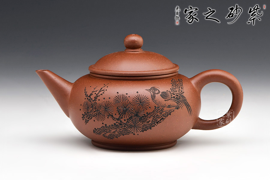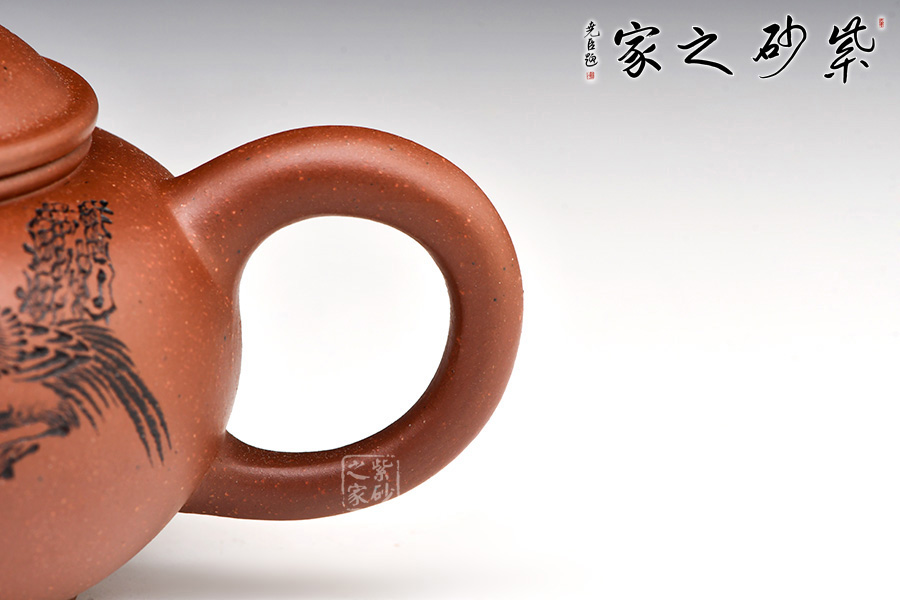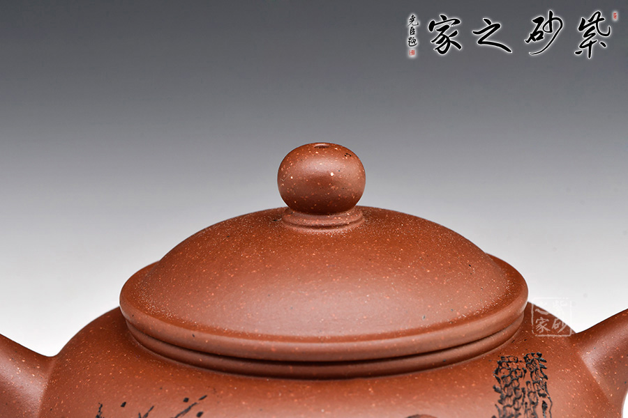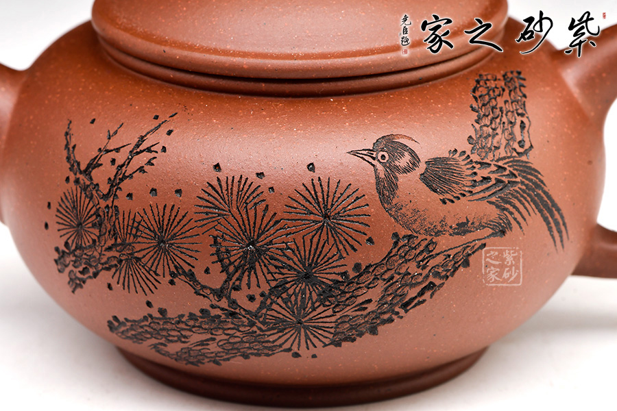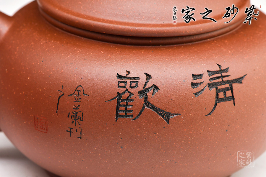 作品以簡(jiǎn)練的線條構(gòu)成淳樸凝重的形體,深厚且具神韻,虛實(shí)和諧,拿握舒適,線條柔和,使整體造型更加雄渾肅穆。壺身通體飽滿大氣,清雅素潔;直流修長(zhǎng)型壺嘴以明接手法與壺身相連,環(huán)型壺把與壺嘴相對(duì)稱協(xié)調(diào),增加整體的協(xié)調(diào)美。壺身和壺蓋緊密連接,嚴(yán)絲合縫。壺嘴尖直,壺把圓潤(rùn)平滑。整把壺?zé)o一處不光滑,無一處不平整。仔細(xì)把玩,原礦底槽青的沉穩(wěn)色澤和細(xì)膩肌理分秒畢現(xiàn),高端的品味和趣味油然而生。陶金蘭老師自制自銘,雙面裝飾,觀賞性倍添!