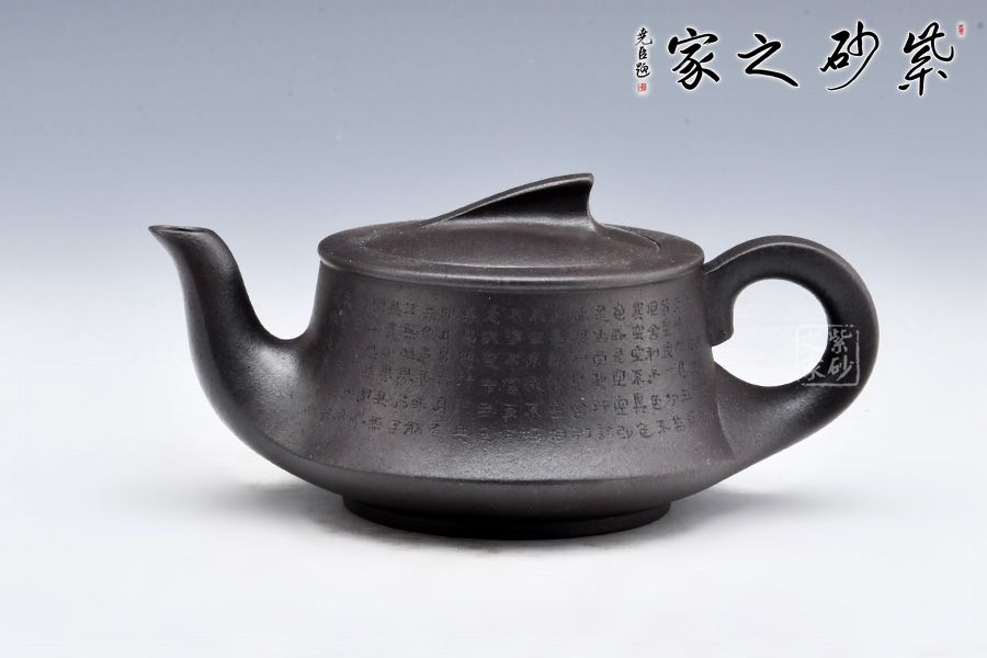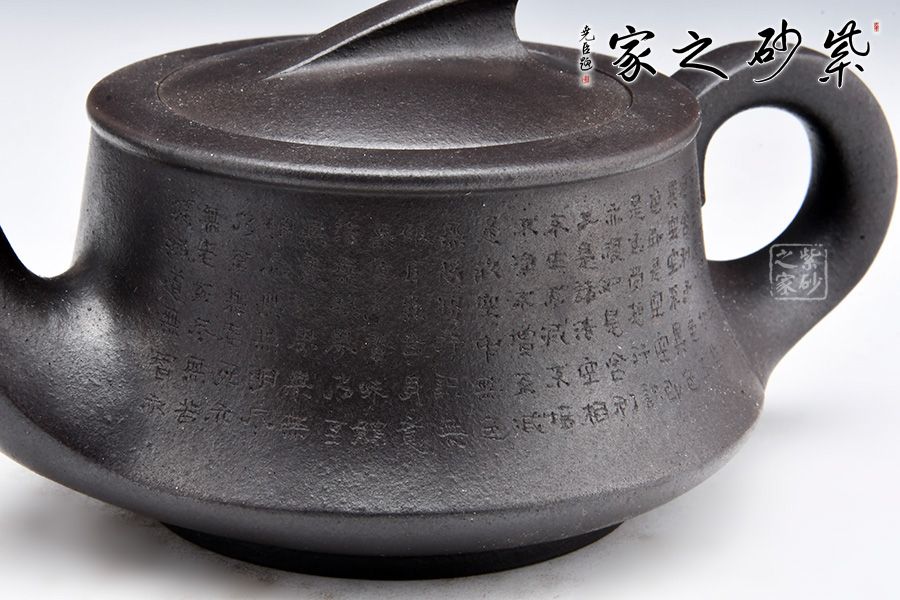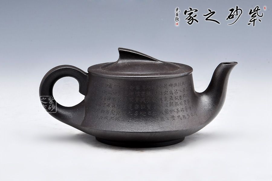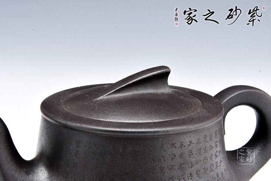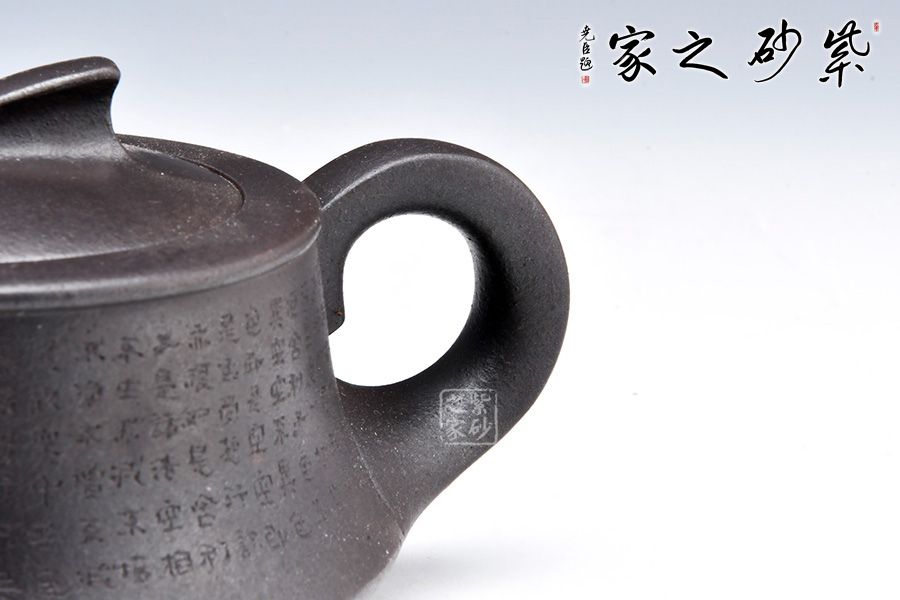 此壺雖是紫砂泥料制成,卻重如鑌鐵,色如玄鐵,感覺上更像一把“鐵壺”。
