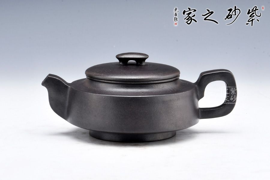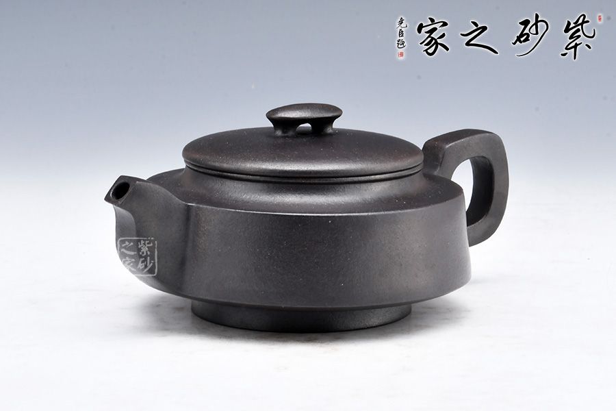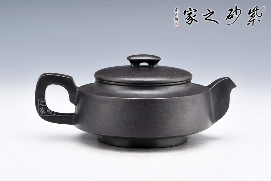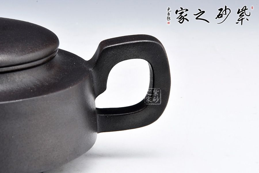 此壺雖是紫砂泥料制成,卻重如鑌鐵,色如玄鐵,感覺上更像一把“鐵壺”。