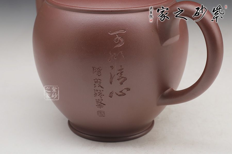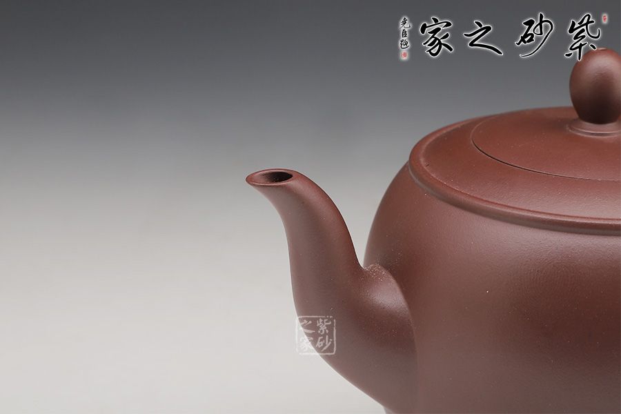 這款壺器是蔣峰老師創(chuàng)新而來,壺身上豐下斂,圓潤飽滿,嵌蓋設(shè)計(jì),與壺身渾若一體。彎流嘴胥出,出水爽利自然,耳形把,端拿舒適,整體大氣優(yōu)雅。