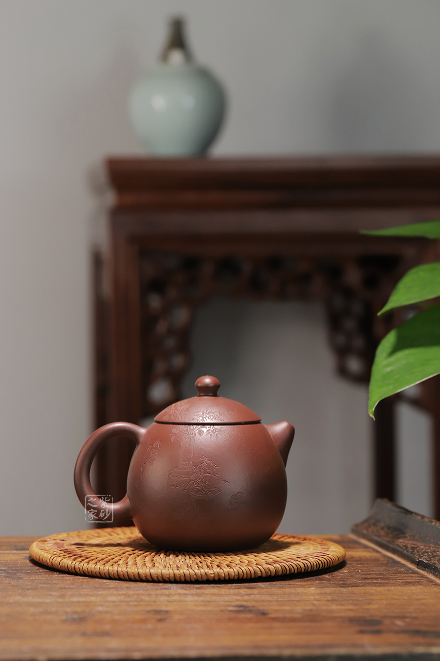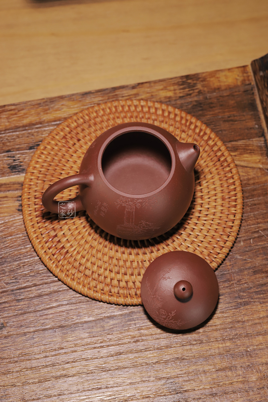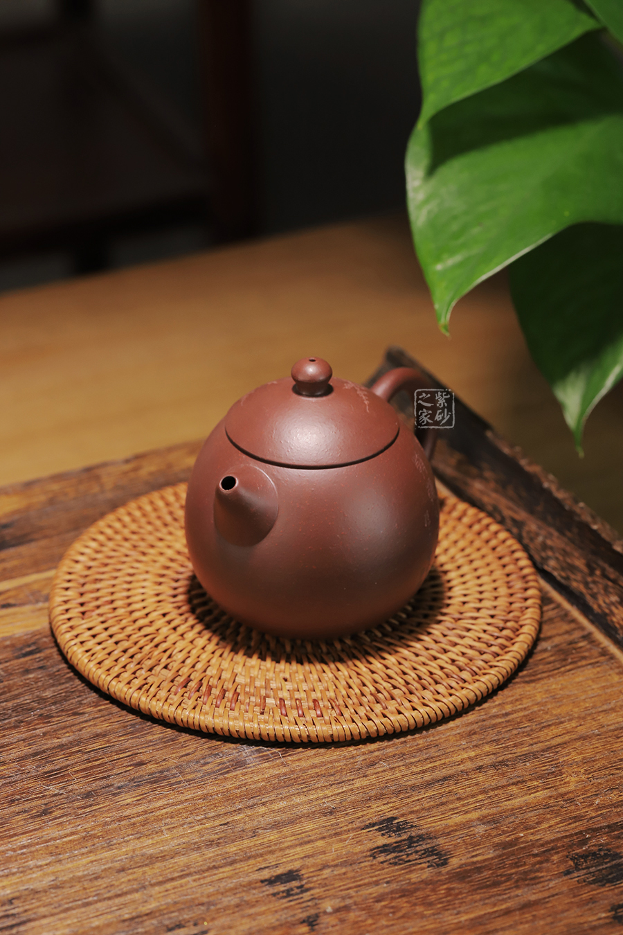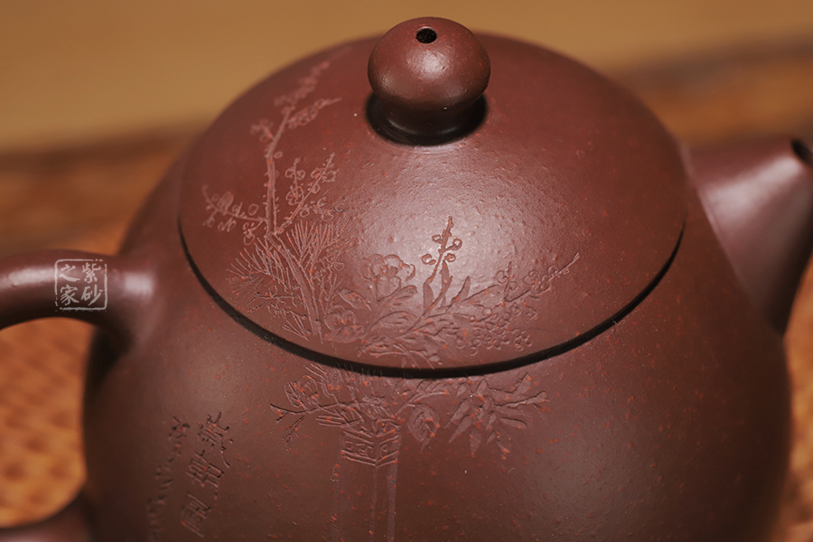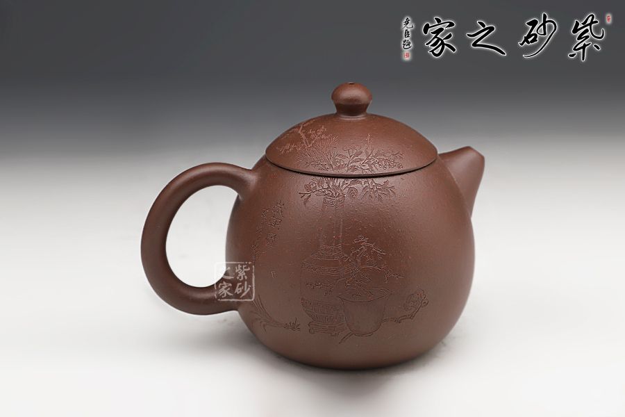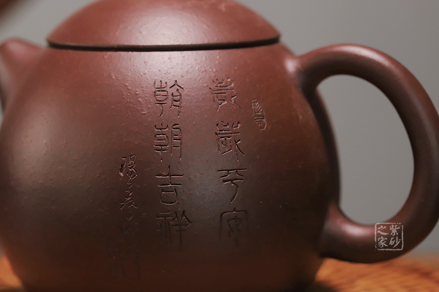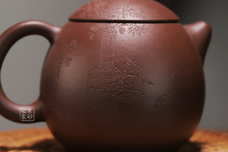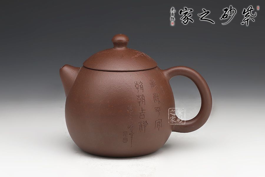 此龍旦通體狀似蛋形,截蓋與壺身渾然一體,氣密性良好,笠形三角狀壺鈕別致而精巧,明接直錐嘴過渡自然,出水迅猛有力,大圈把勢與壺體趁勢,壺體下部過渡平緩,手握舒適,全器平添一種拙味和稚氣的親切感。