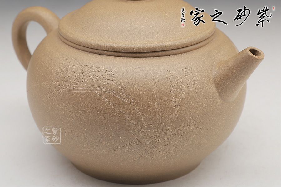 通身是素雅簡(jiǎn)樸的線條,工整里不失變化,意味非凡。身筒飽滿清晰,壺身是球型,圓滑巧妙從頂部一直延伸到底端,外觀尤其飽滿。壺蓋是壓蓋設(shè)計(jì),蓋上平整,珠形鈕細(xì)致有感,大方沉穩(wěn)。壺嘴嘟嘟,接連壺身再貫通道壺把,一脈相承的做法細(xì)膩柔和。