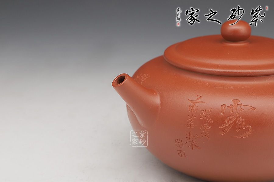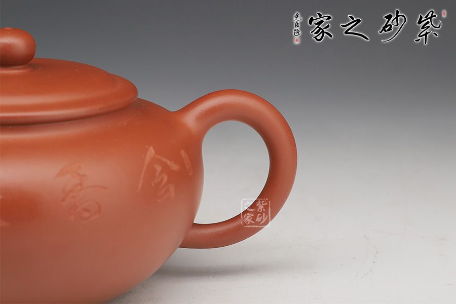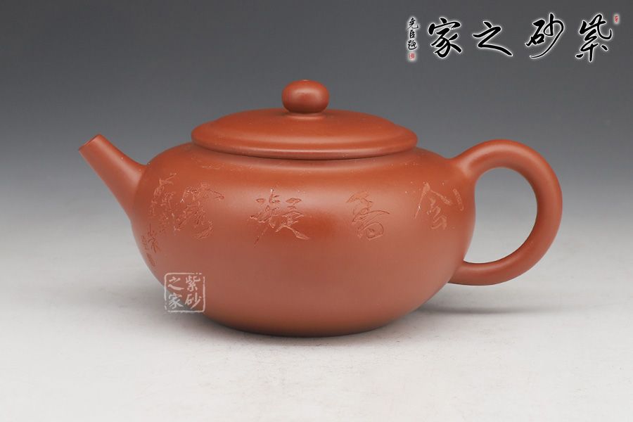 特點:質(zhì)感綿密、緊實細緻,持之扎實沉重、紅潤豔麗,泥中極品,無以倫比;泥胚含少許原礦顆粒,沖淋熱水后色變極大,呈紅中帶紫,養(yǎng)壺易現(xiàn)“包漿”之美。