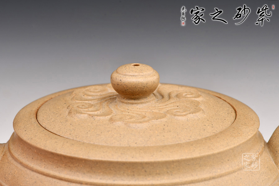 此壺與別款的如意壺不同,將如意紋飾裝飾在壺蓋附近,此壺造型與以往的如意頗有不同,甚是耐人尋味;選用的是原礦段泥泥料,感甜嫩綿密,質(zhì)堅而溫潤。