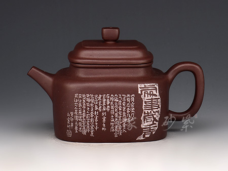 多年的學(xué)習(xí)積累,裝飾風(fēng)格自成體系,創(chuàng)作了系列化裝飾作品,成為全方面將中國文字學(xué)和傳統(tǒng)文化融于紫砂藝術(shù)的第一人。相較于紫砂藝術(shù)中常用文字,夏素紅老師所用文字裝飾效果更有唯一性和獨(dú)特性。中國稀有、失傳文字學(xué)的使用彰顯其作品有強(qiáng)烈的個人風(fēng)格,亦是復(fù)古風(fēng)的代表性佳器。