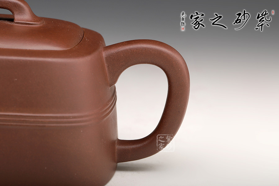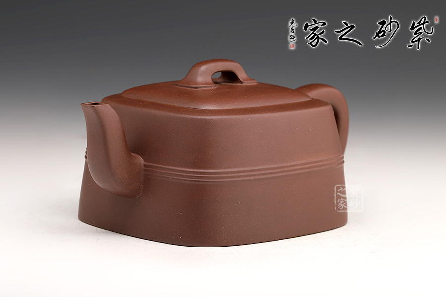 此壺壺型形似天地方圓,將方與圓的藝術(shù)完美的融合在一起,更好的詮釋了方圓的藝術(shù)美感。此壺做工細(xì)致,壺身線條柔和飄灑,三圈陽(yáng)線如腰帶一般在壺肚上,紋理簡(jiǎn)單大氣,色澤淳樸典雅。壺身方而不銳利,橋形鈕壺蓋微鼓,壺把、壺嘴皆呈為圓角方形,整個(gè)壺體剛?cè)岵?jì),婉轉(zhuǎn)而又大氣。
