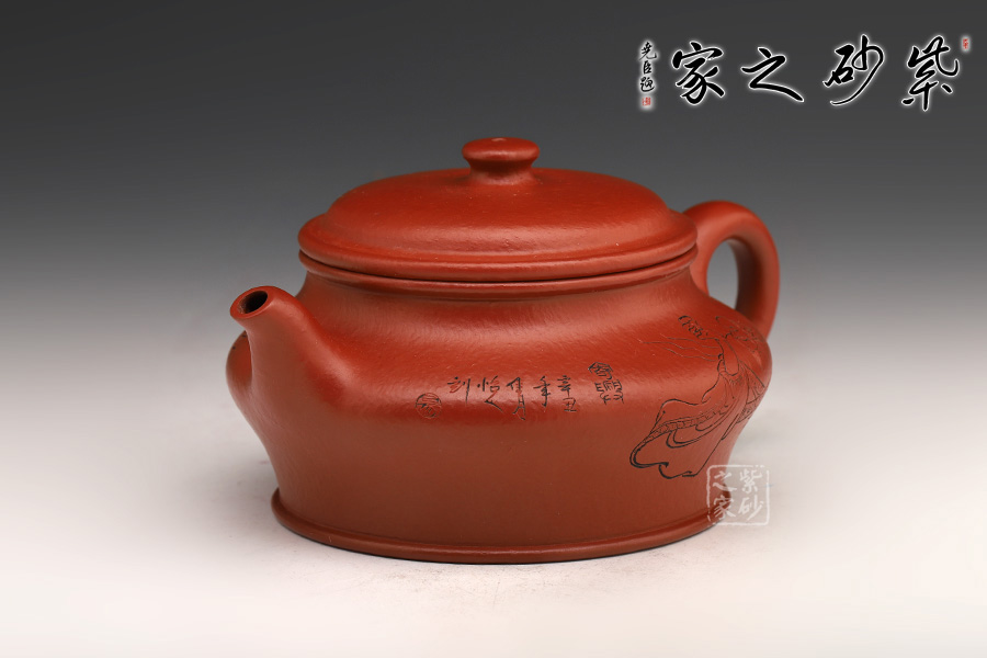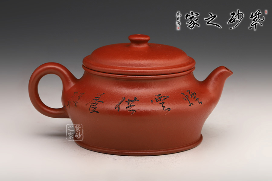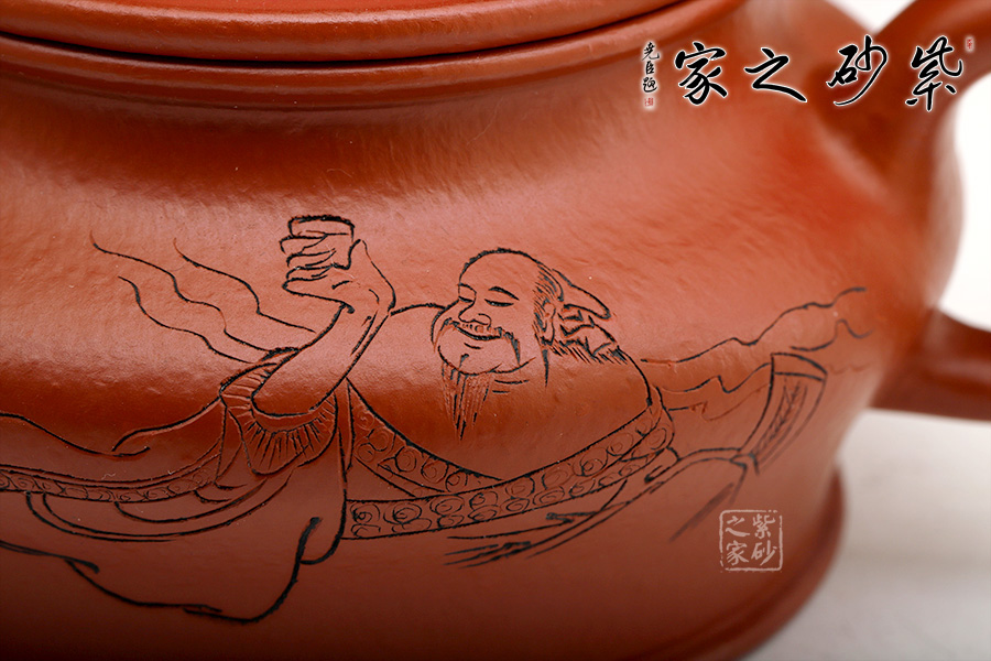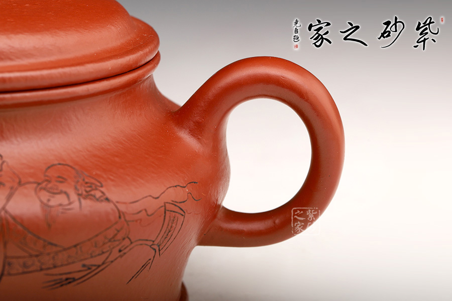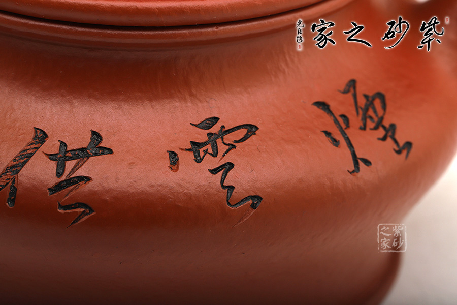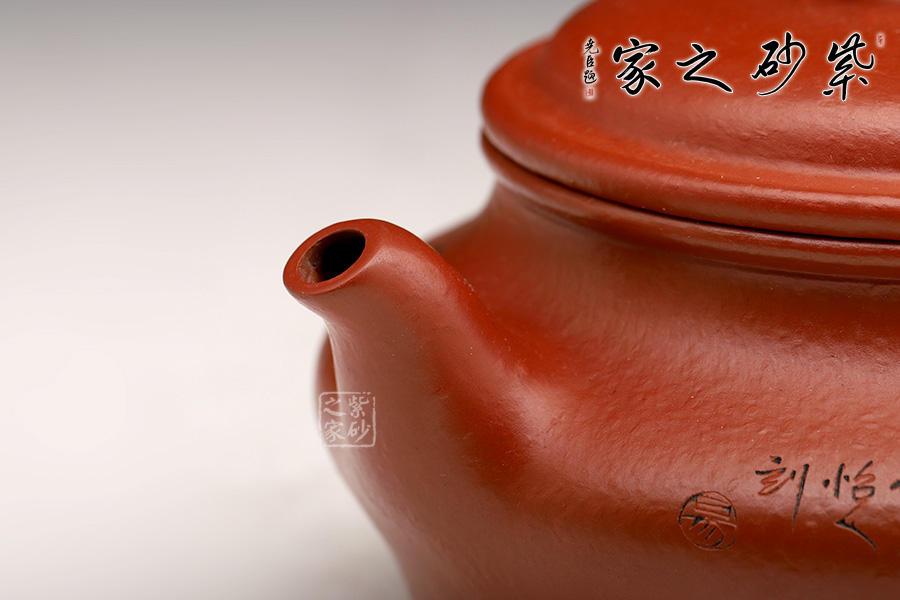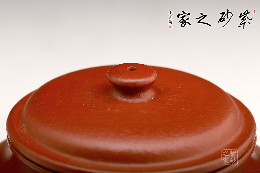 此壺端莊大氣,飽滿大度的壺體,給人以有容乃大的大家風(fēng)范和氣度;一彎壺嘴、耳型壺把自肩線而出,橫向拉寬壺體;子母線壓蓋,頭頂扁圓鈕。