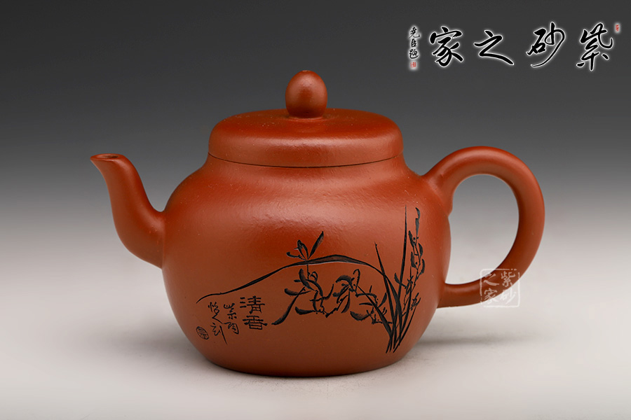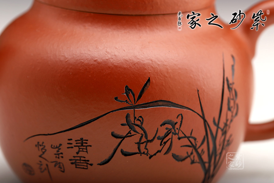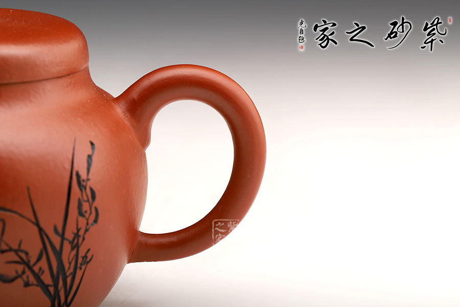 此宮燈紫砂壺宛如古代女子端莊可愛,帶點宮廷的雍容華貴,又不失大家閨秀般的妖嬈。造型飽滿,大方得體,以體現(xiàn)圓潤的壺身為主,壺蓋與壺身仿佛合為一體,沒有空隙,用手撫摸上去,能感受到它的溫暖。芊細的三流嘴與壺把恰如飄舞的絲帶,多了一份溫婉,少了一份深沉。刻繪清香蘭花于壺身,風(fēng)雅十足。