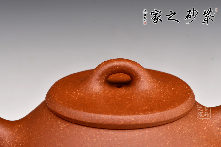壺身呈梯形,亦曲亦直,顯現(xiàn)簡樸大方的氣度。足為釘足,呈三角鼎立狀支撐,給人以輕靈而穩(wěn)重之感。暗接直流嘴,簡潔順暢;倒三角壺把,簡練有力;圓壓蓋,橋形鈕,大方簡潔。