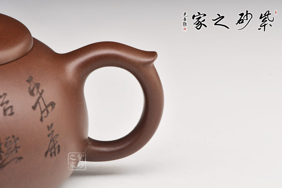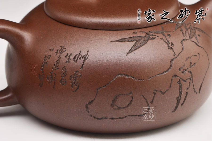 過橋扁腹 ,作者徐赟,精于陶刻,師從陶刻大家錢一清和中國工藝美術(shù)大師曹亞麟,又得中國工藝美術(shù)大師鮑志強指點,陶刻制壺雙精。