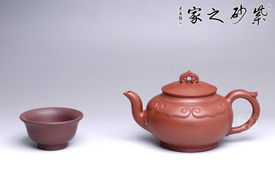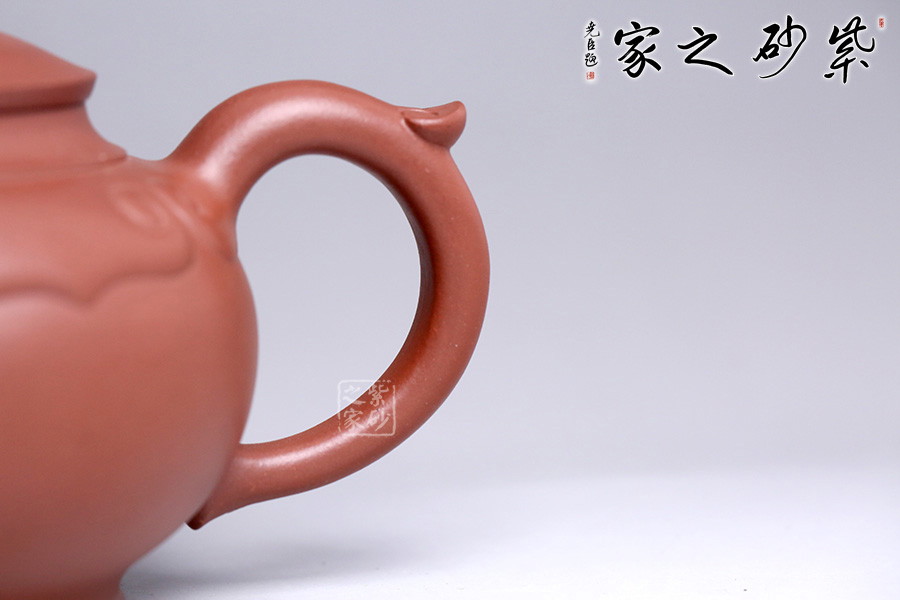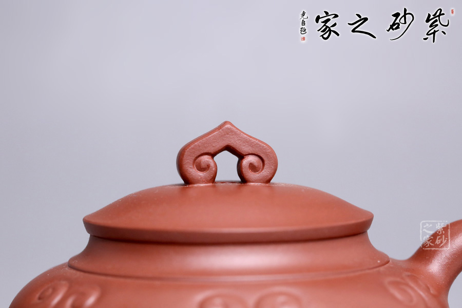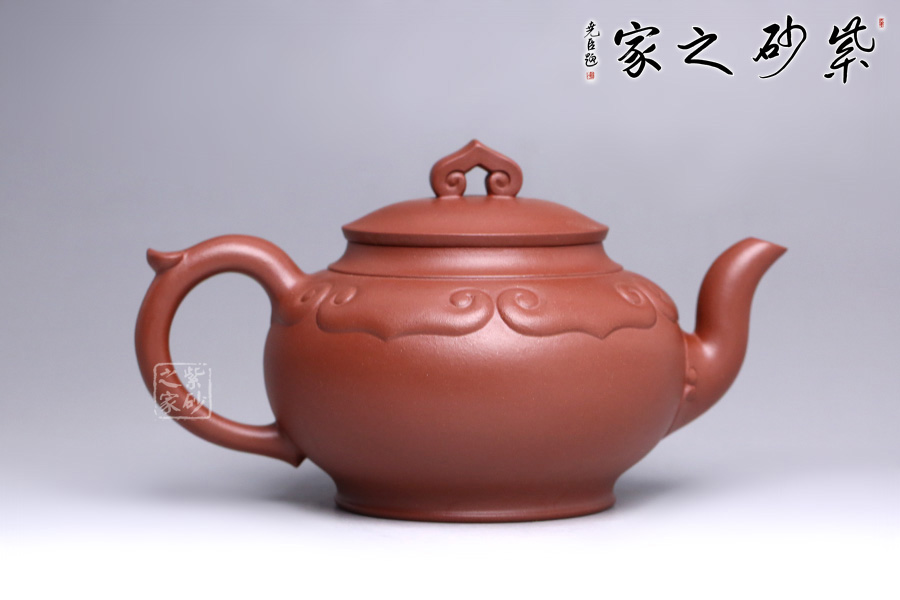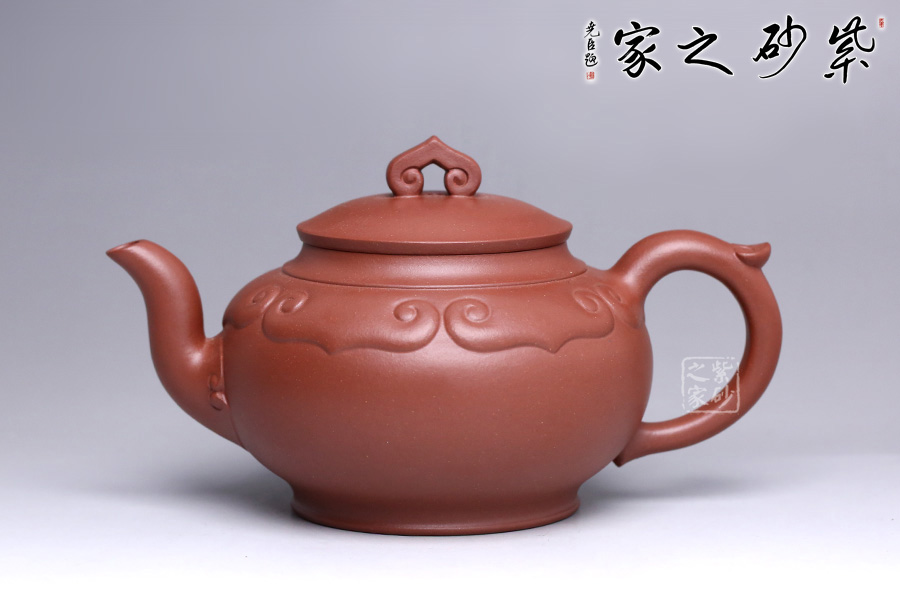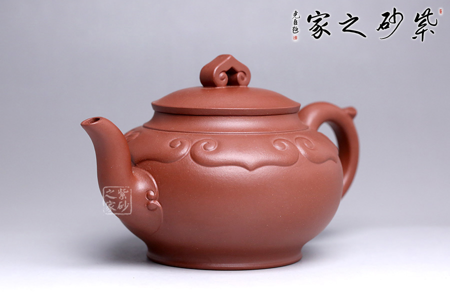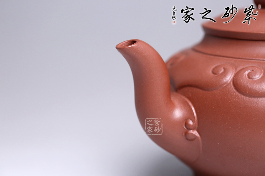 器型大氣而豪爽,紫泥特有的沉穩(wěn)神秘特性增添作品的韻味,圓潤飽滿的壺身不但有著高雅脫俗的藝術(shù)魅力,壺鈕鏤空祥云紋樣,壺把飛出一小朵祥云尾,壺身隨處可見的如意紋飾刻精工細(xì)作,效果恰到好處,將老師滿滿的祝福融入到作品中,充分體現(xiàn)的作者的心靈相通,追求藝術(shù),追求工藝技法的精神。整把壺生動活潑,造型一氣呵成,不管是泥料還是做工,都是作者用心而成的一件藝術(shù)珍品。