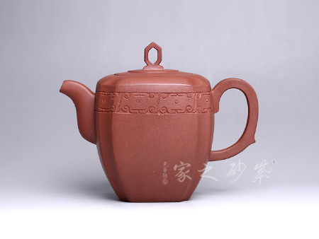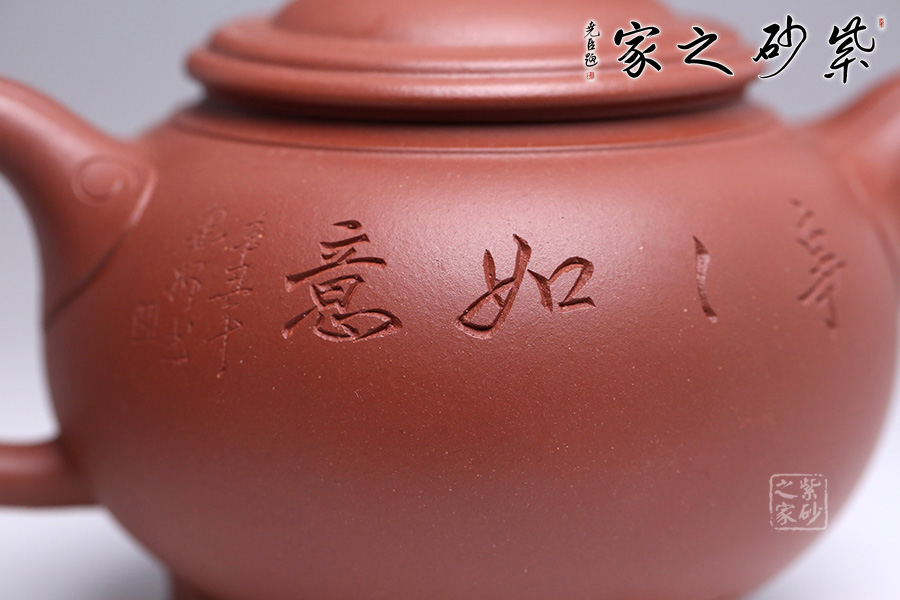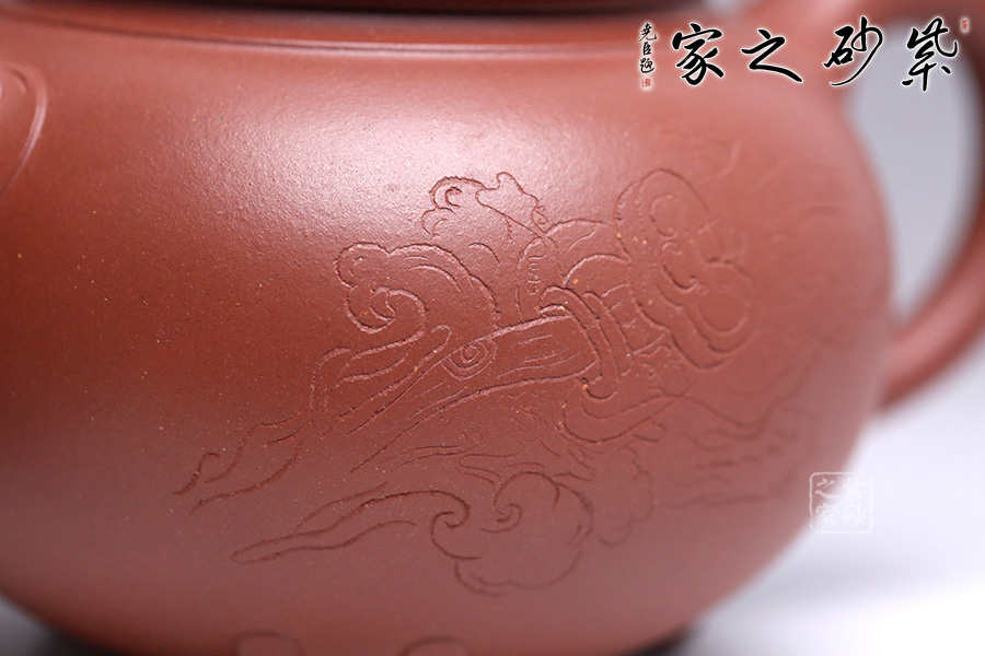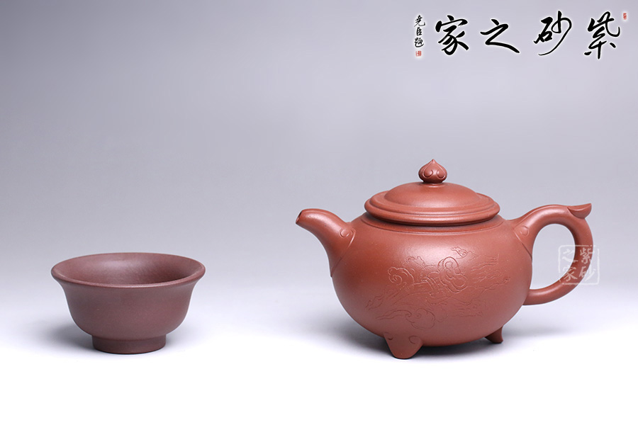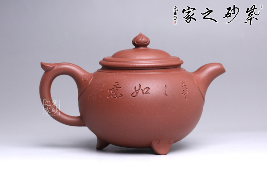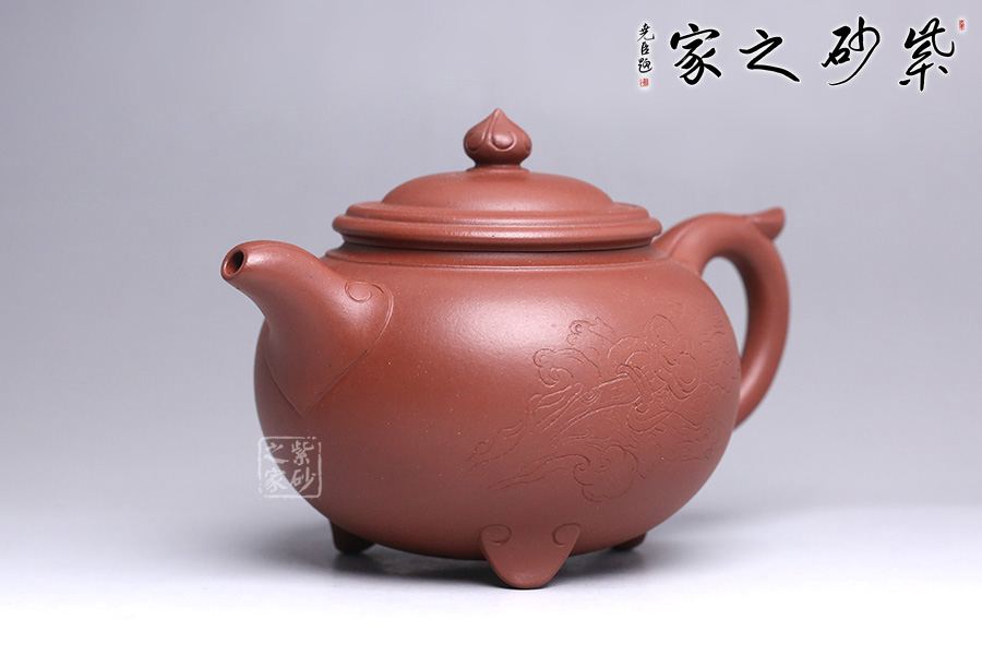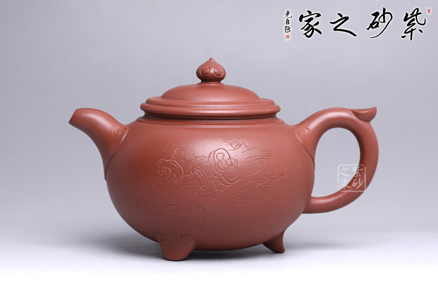 此壺名為《事事如意》,造型古典大方,典雅精美。壺身圓潤飽滿,顯得靈巧而穩(wěn)重,如意紋飾完美地點綴其中,挺拔向上。三鼎足設(shè)計,形狀小巧典雅,增添了更多氣韻。明接的壺把和壺嘴自不用多說,簡明精巧,與壺身的氣韻很協(xié)調(diào)。整體來看,做工爐火純青,無可挑剔。