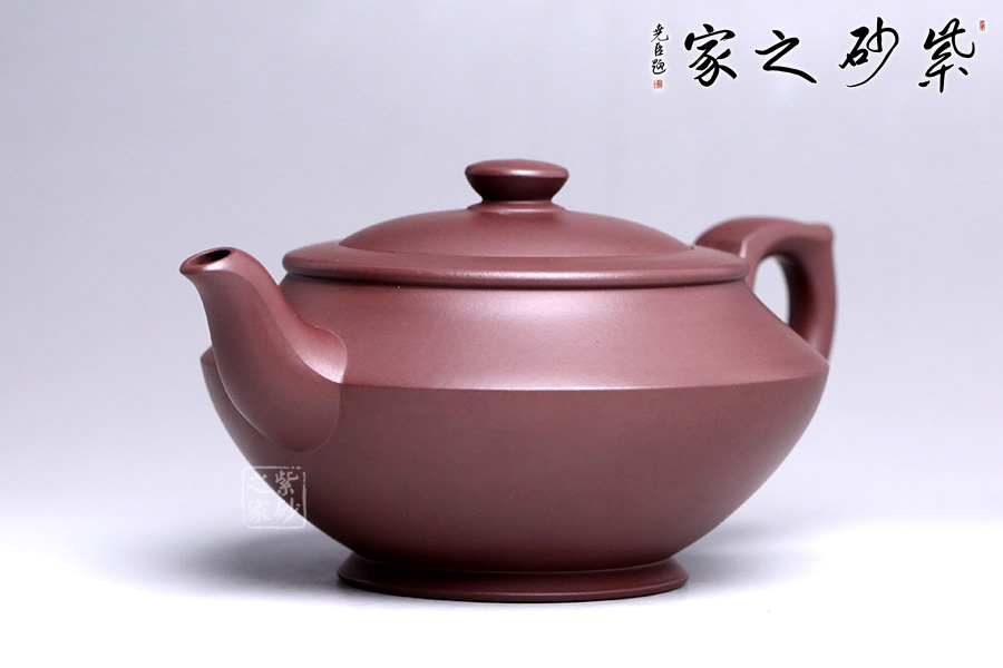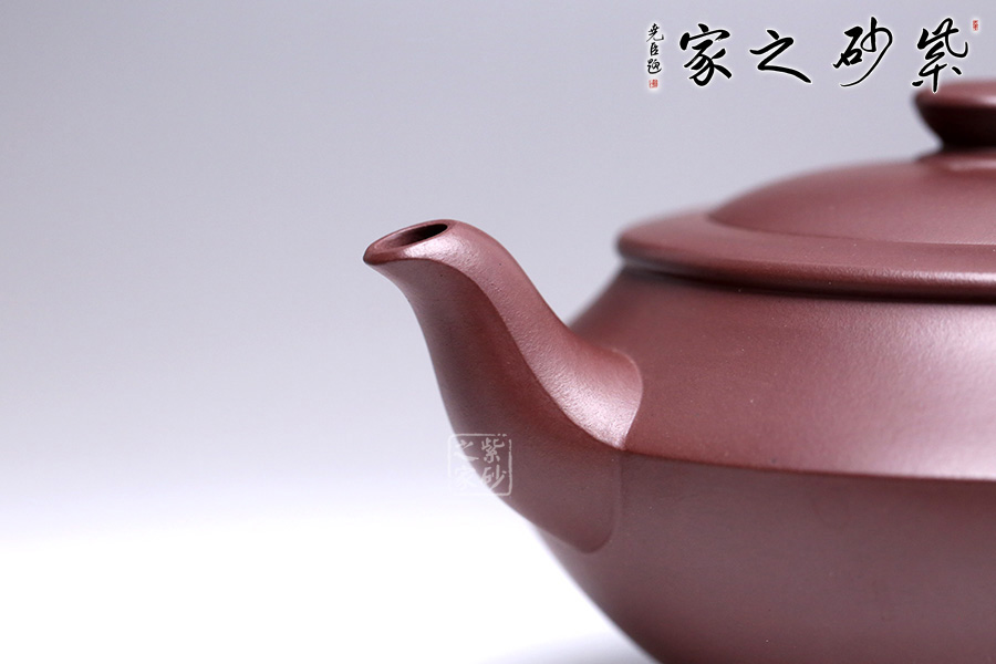 壺身一條接線延申至壺嘴,顯出圓中帶方的美感,壺鈕扁圓似圍棋棋子也似帽頂,整個(gè)壺蓋仿佛一個(gè)帽子,壺肩處延申出帽檐。整個(gè)器型美觀大方,既實(shí)用又極具收藏價(jià)值。