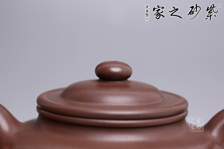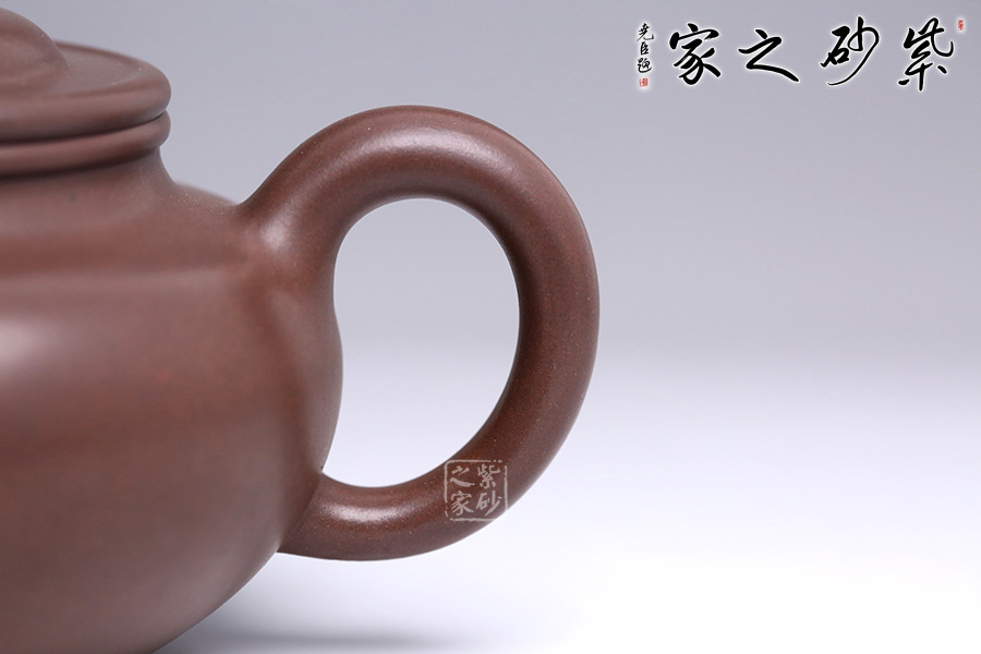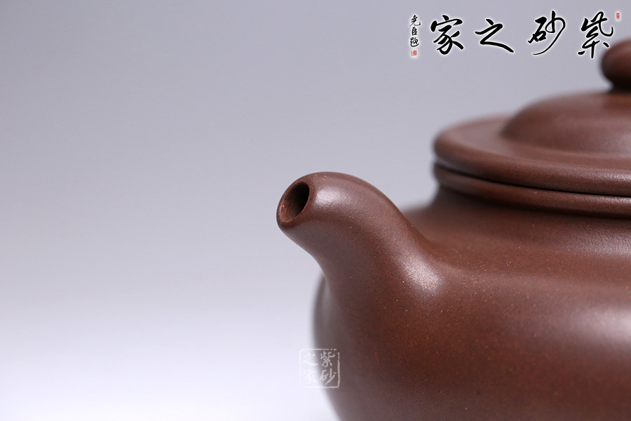 此壺是經典紫砂壺型之一,整體以飽滿的圓形為主,口蓋一線是明顯的仿古特征。壺嘴與身、壺把與身,銜接處暗接處理,不見手工痕跡,不露處理指紋。做工精致,線條流暢,非常符合張斌老師制壺的特點。
