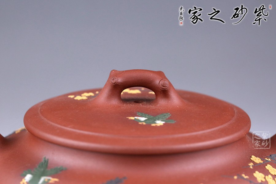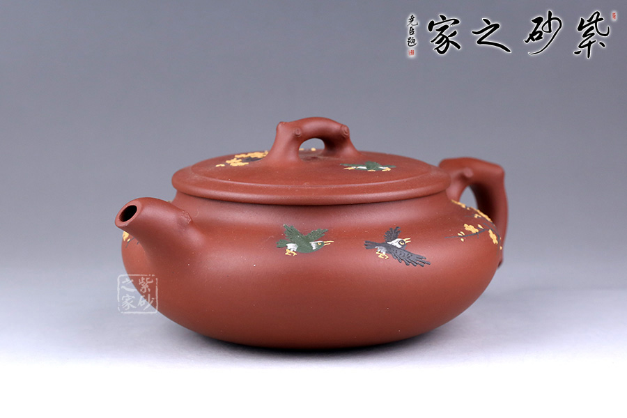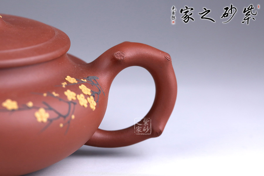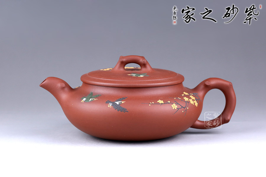 朱老師的這款花塑器秀氣柔美,春暖花開(kāi),萬(wàn)物復(fù)蘇,燕子也開(kāi)始活躍起來(lái),此作品以梅花為主題,所謂“冰清玉潔”即是贊美梅花的氣節(jié)和精神,壺身描繪了多姿多彩的春天的景象,梅花盛放,春燕盤旋,色澤清雅動(dòng)人,與春天花兒齊放的場(chǎng)景相呼應(yīng),整壺采用泥繪的手法將燕子與花的靈動(dòng)和美艷巧妙體現(xiàn)。樹(shù)枝為鈕、嘴、把,形象而生動(dòng),做工精細(xì),手法高超,用料講究,構(gòu)思巧妙,收藏與自用皆可。