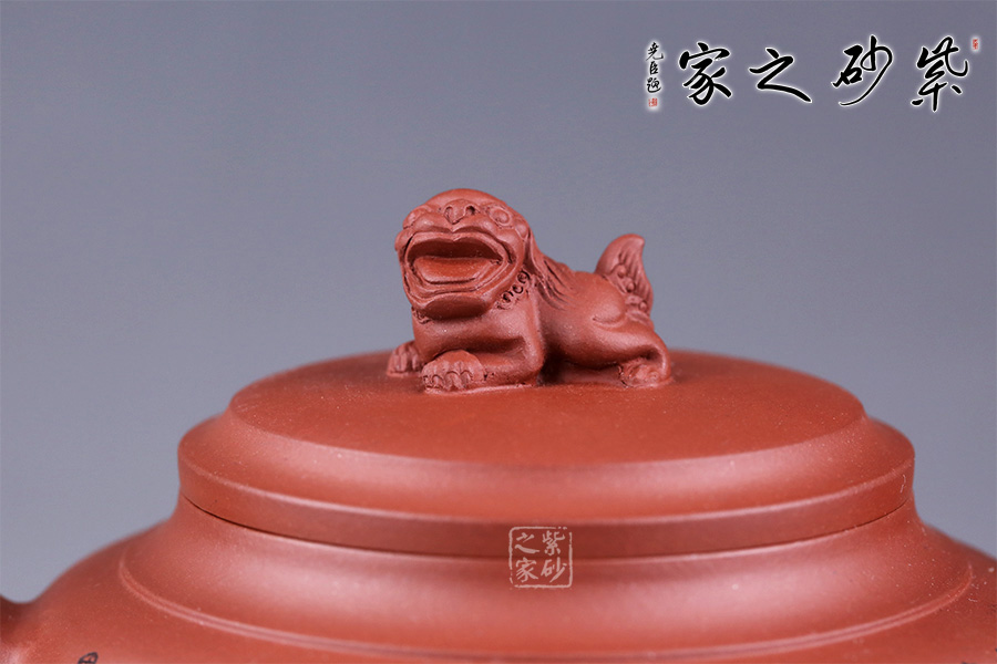 壺嘴彎流與飛檐環(huán)把呼應(yīng),其曲線流暢卻又顯得動(dòng)態(tài)十足,壺蓋之上圈紋飾之立體感強(qiáng),一只瑞獸為鈕,制作精細(xì),形態(tài)逼真,整器猶為穩(wěn)重而渾厚,但又有些許的靈動(dòng),是一款不可多得的好壺。