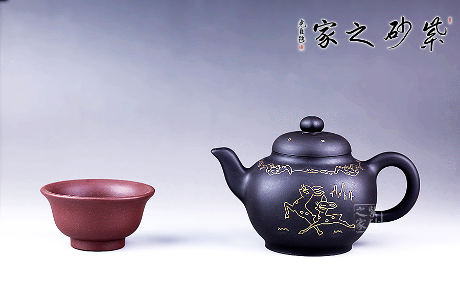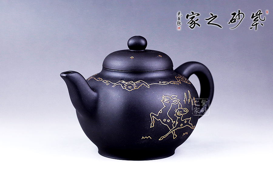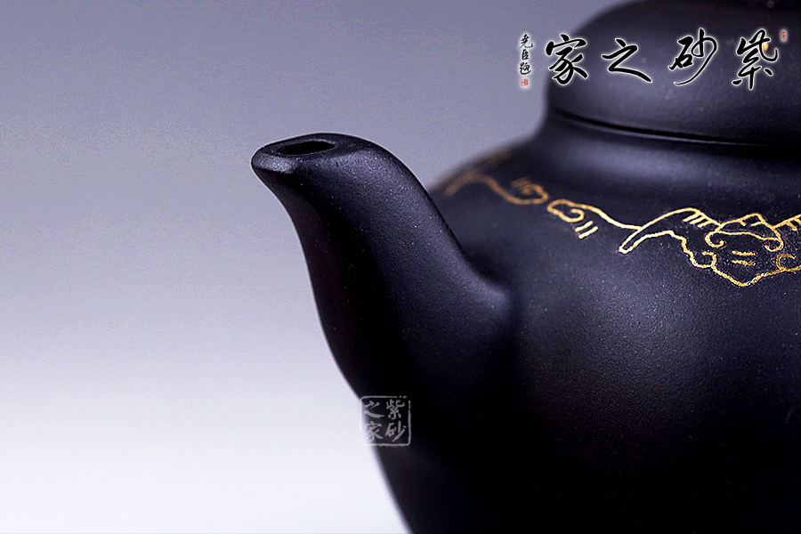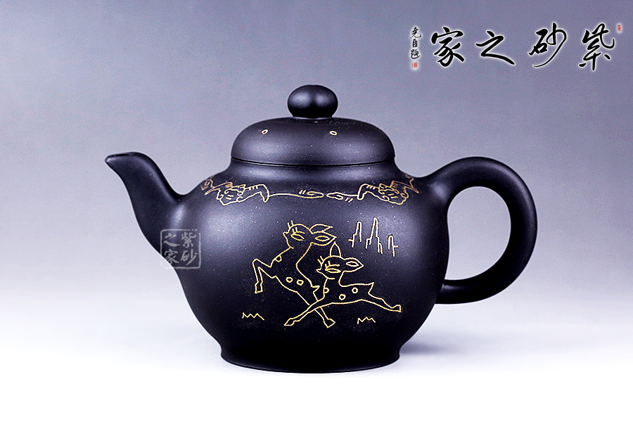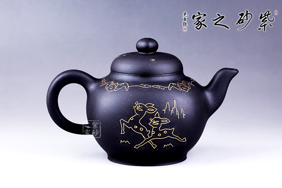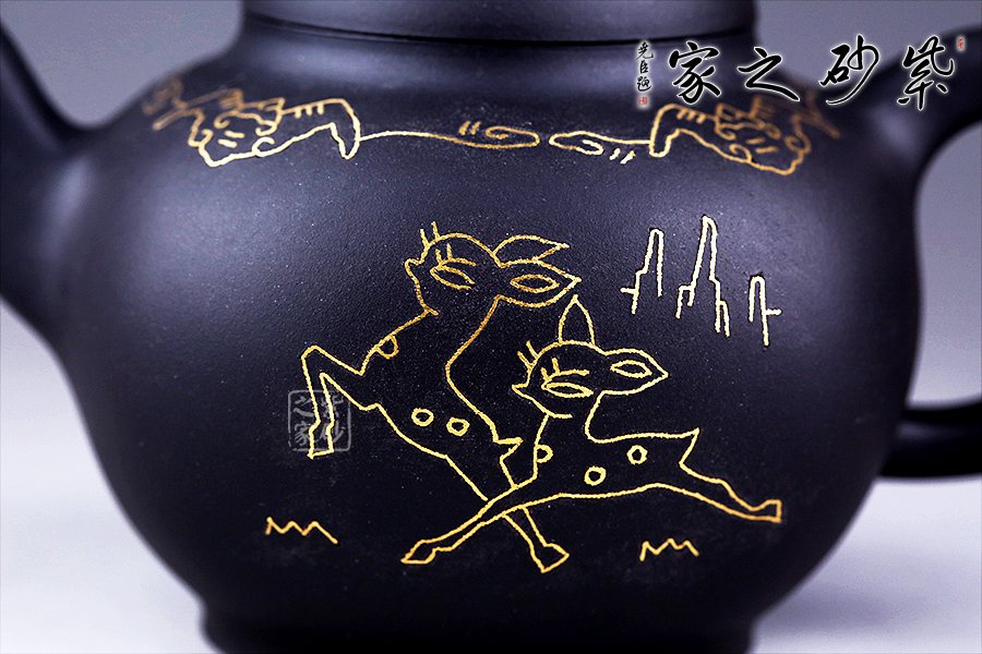 這款鑲金福碌細(xì)而不膩,綿密柔和,散發(fā)著別樣的光彩。采用方圓結(jié)合的輪廓造型,顯得尤為敦厚大氣。壺肩部用金絲鑲嵌蝙蝠合卷云紋,蝙蝠和祥云預(yù)示著“福運(yùn)”的美意,壺身正面鑲嵌著兩只跳躍的小鹿,故名為“福碌壺”,鑲金畫(huà)面流光溢彩,寓意吉祥,是送禮的佳品。