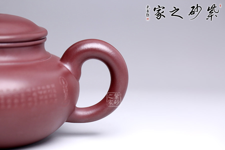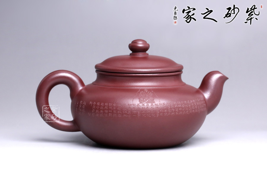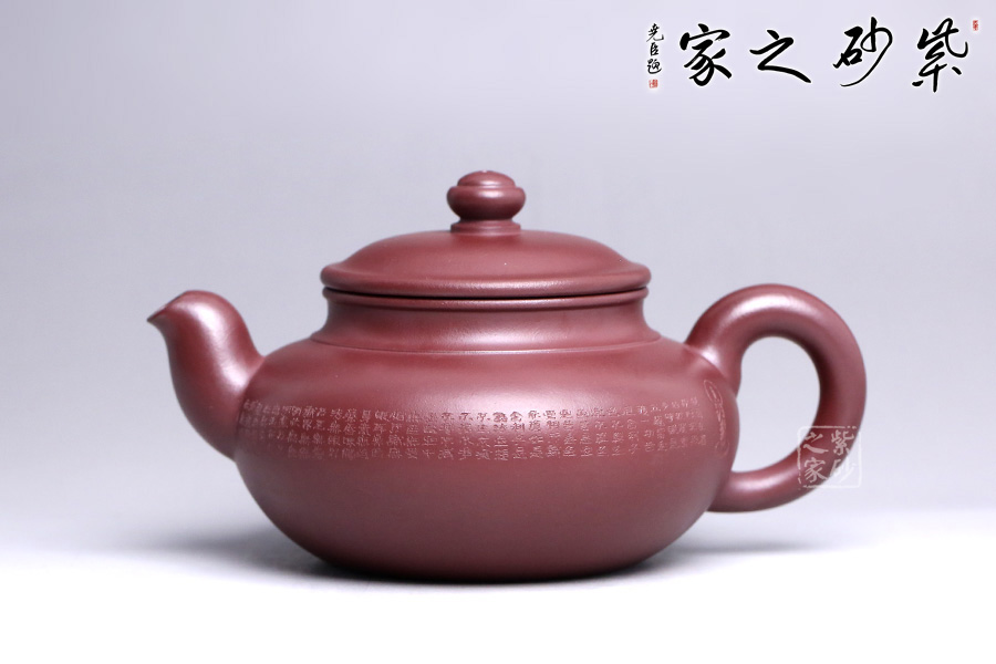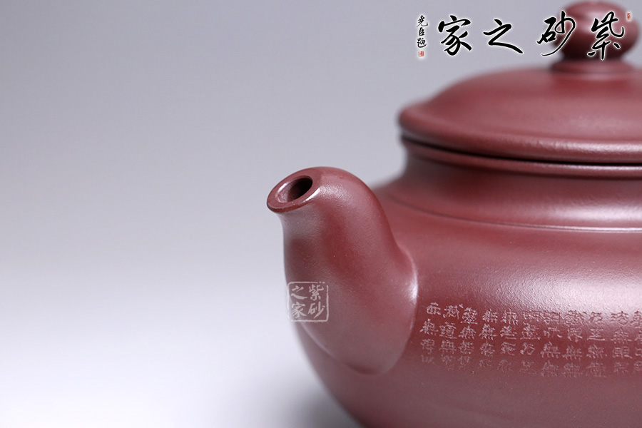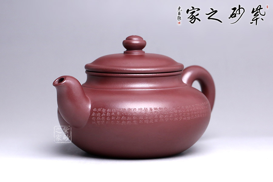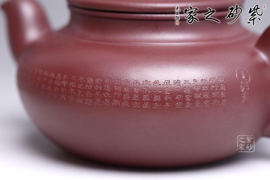 此款福緣乃張斌老師全手工精制而成,壺體造型優(yōu)美、線條流暢。壺身刻繪心經(jīng),大有凝神靜氣之感。壺嘴、壺把、壺紐設(shè)計(jì)精細(xì),比例得當(dāng)。張老師注重細(xì)節(jié)處理,做工非常精致,整體比例協(xié)調(diào),大方簡(jiǎn)潔,是一把不可多得的紫砂壺,極具收藏價(jià)值。