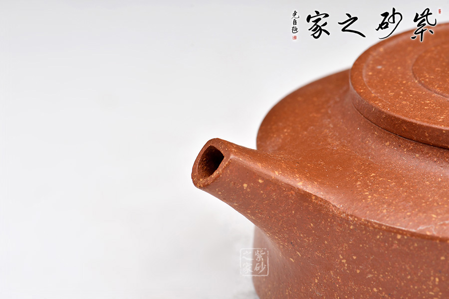 泥性:原礦因含緞泥、紅泥、紫泥等諸多共生礦,陶之后,于深沉之“橙紅色”底上,滿佈五彩斑斕的粗細(xì)、深淺之紅、黃星斑點(diǎn)。