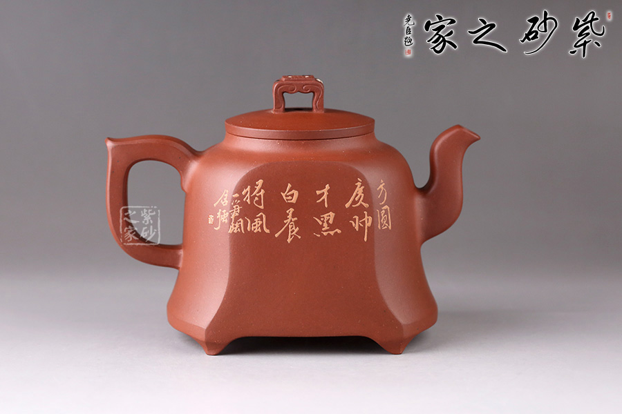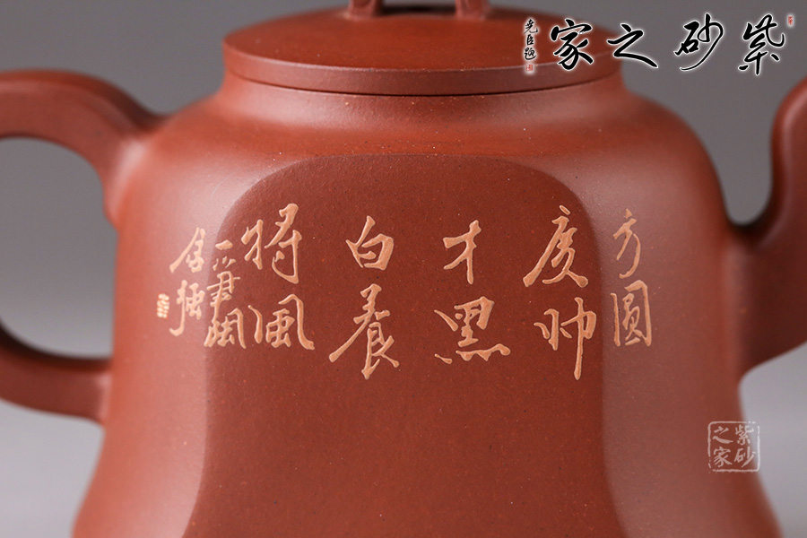 此壺壺身為四方狀,卻不顯呆板凝滯,方中帶圓、圓中帶方,給人以美好的視覺享受。