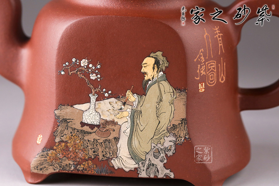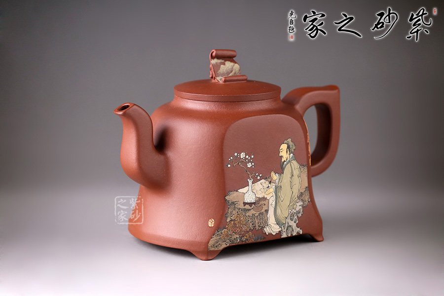 觀此壺,造型樸雅,形制嚴(yán)謹(jǐn),技藝精湛,壺身裝飾恰到好處。紫砂壺已不再是單純的喝茶工具,它已上升到一種精神境界,情感寄托。它所肩負(fù)的,是傳奇的演繹,時(shí)代的解讀,文化的歸宿,智慧的凝集。品讀賀洪梅的《畫(huà)》,讓人感受到一壺詩(shī)意一壺情,詩(shī)情畫(huà)意皆壺中。這也許就是藝術(shù)追求的感染力,親和力,表現(xiàn)力。