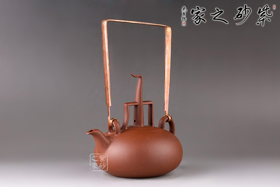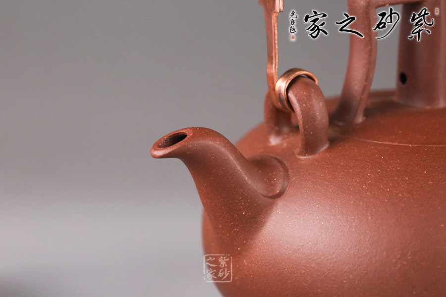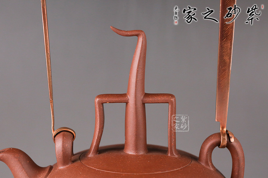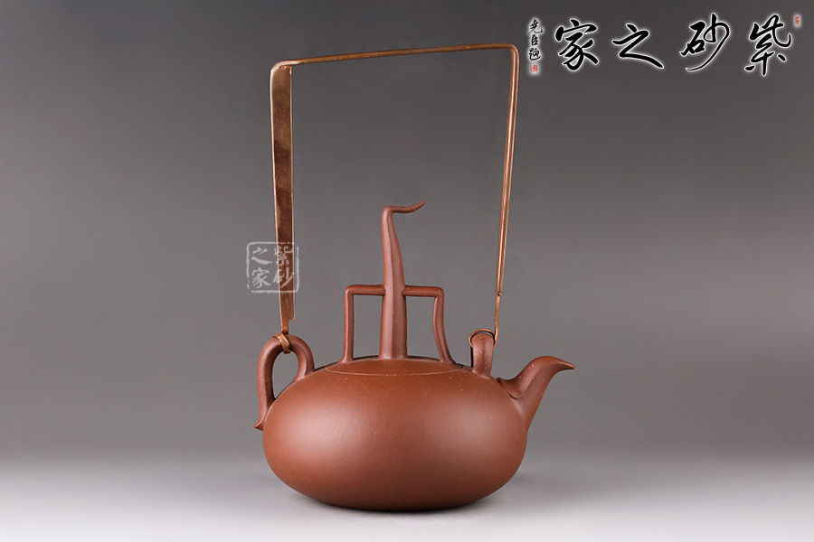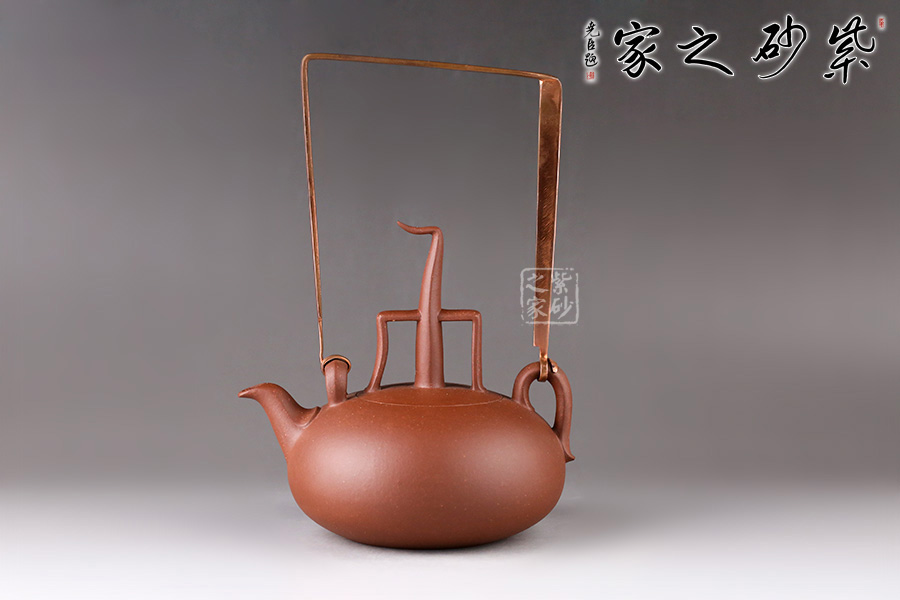 此壺造型厚重大氣又注重美學(xué)效果,風(fēng)格高雅,壺身氣韻飽滿,壺把、壺嘴、壺蓋設(shè)計構(gòu)思巧妙,凸顯靈氣,給整把壺增加了靈韻。觀此壺,如一只行進(jìn)的帆船,讓人聯(lián)想到詩仙李白的“長風(fēng)破浪會有時,直掛云帆濟(jì)滄?!钡陌蹴绱髿?。