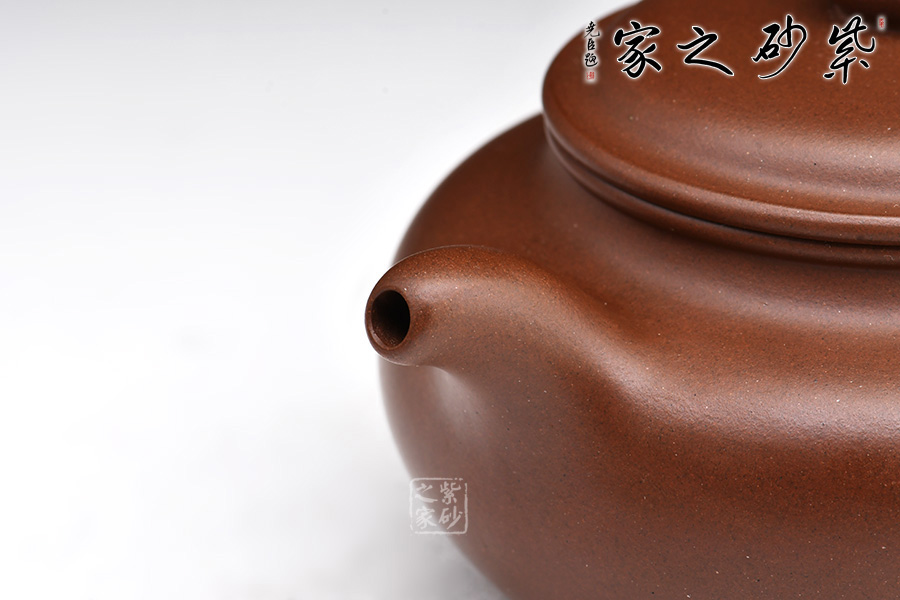 此壺名為“仿古”,是紫砂壺的傳統(tǒng)經(jīng)典器型,選用文革紫泥制作而成,泥色古樸典雅。 造型仿“鼓”之形,壺身扁圓,壺腹飽滿,鈕、蓋、身三位一體,線條銜接流暢。彎流挺拔,出水爽利,耳把端莊秀麗,把握舒適。