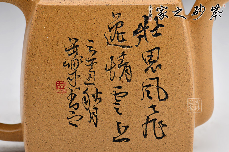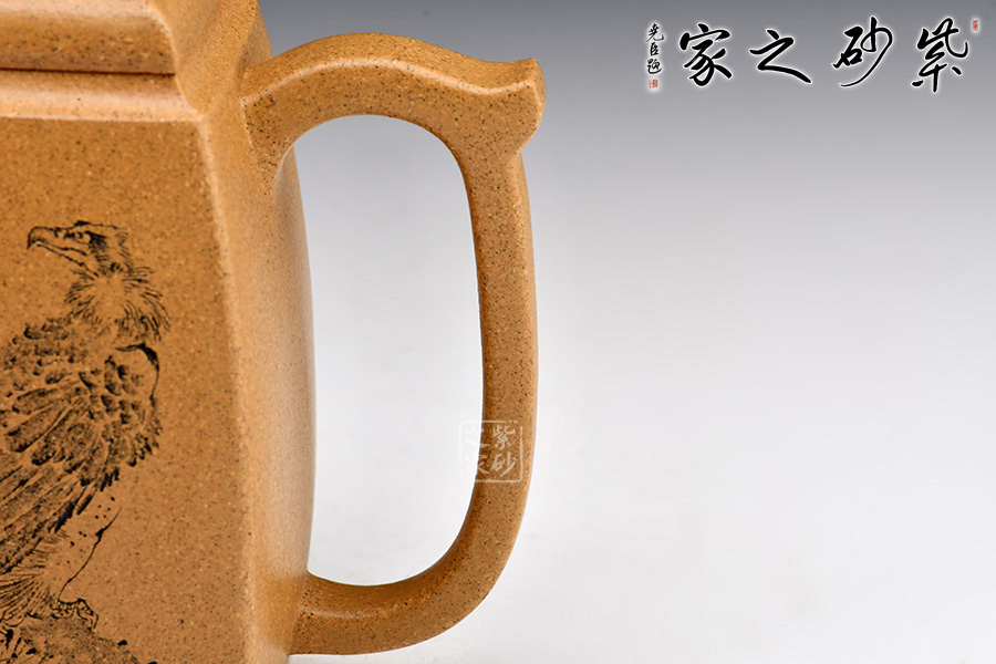 漢方是方器中經(jīng)典器型之一,穩(wěn)重大方而不失雅致,器型大氣飽滿,線條流暢豐美,氣勢非凡,令人賞心悅目。采用黃金段泥制作,精雅而不失古樸風(fēng)味,加之飛把設(shè)計,曲線與直線的完美結(jié)合,作品方中見圓,圓中有方,實為佳作也,品茶鑒賞之何等的快哉!
