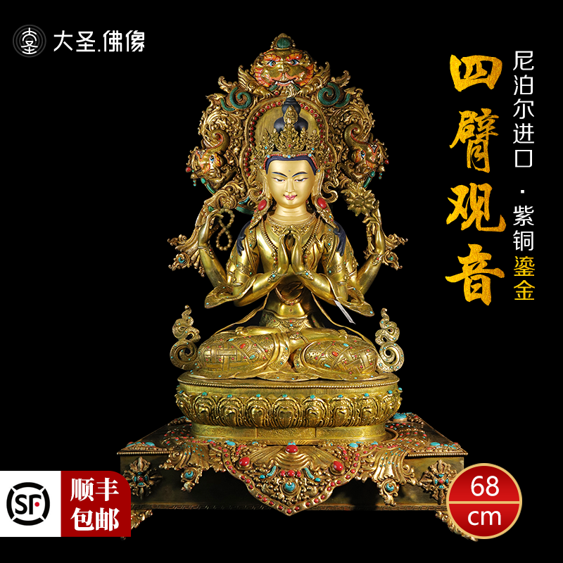 尼泊爾johnny佛像四臂觀音50公分加底座70公分 [ 編號:125680 ]