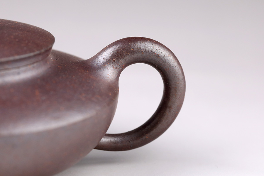 扁圓的壺身向下收斂,壺底圓潤(rùn),壺嘴扁而修長(zhǎng),耳形把隨身勢(shì),截蓋設(shè)計(jì),蓋鈕小巧。此壺各部與燈芯、燈把,托盤一應(yīng)對(duì)應(yīng),造型逼真。泥料精良,出茶味醇厚飄香,容易泡養(yǎng),值得收藏。