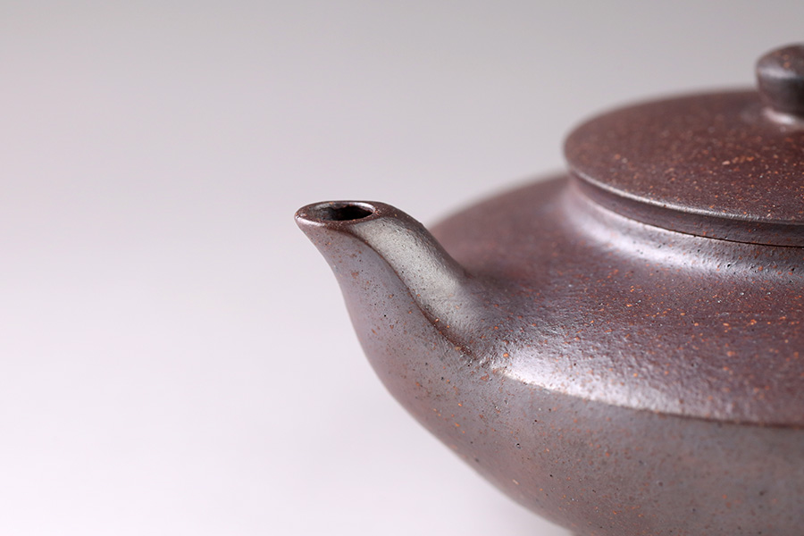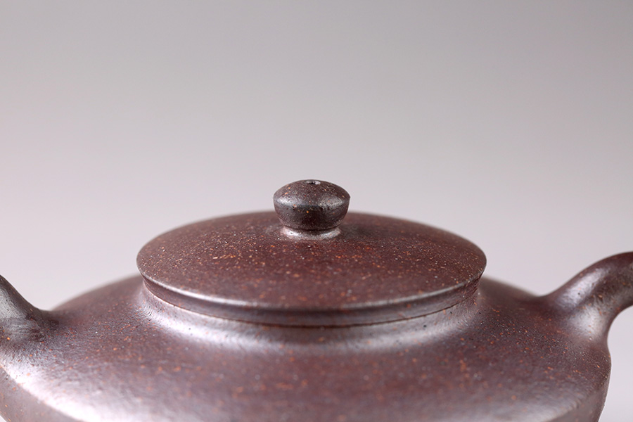 部分作品采用上佳紫砂泥(稱為“純紫老泥”),吸水性佳,透氣性驚人。壺內(nèi)沖入熱水后,與壺底接觸的桌面會(huì)自然出現(xiàn)水珠,壺底卻是干的。此效果目前國(guó)內(nèi)僅見于陳正初一人的作品。小編的不完全測(cè)試表明,紫砂之家現(xiàn)存的“金玉滿堂”、“小樹樁”、“中仿古”、“一品大員”、“中仿古(光)”均有此神奇效果(其他未測(cè)試)。