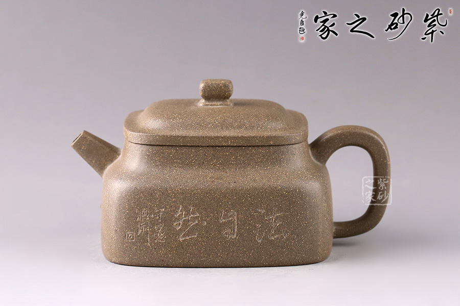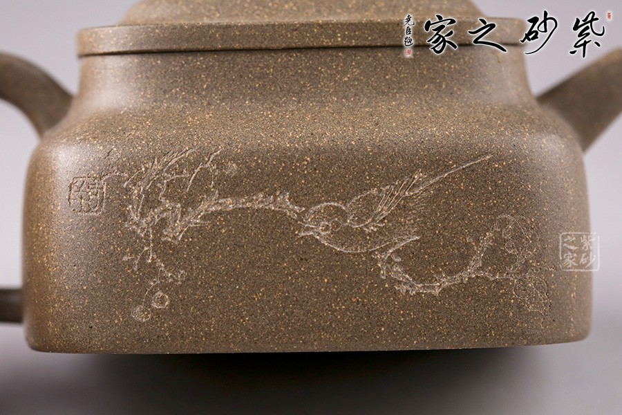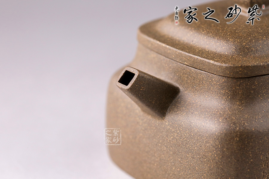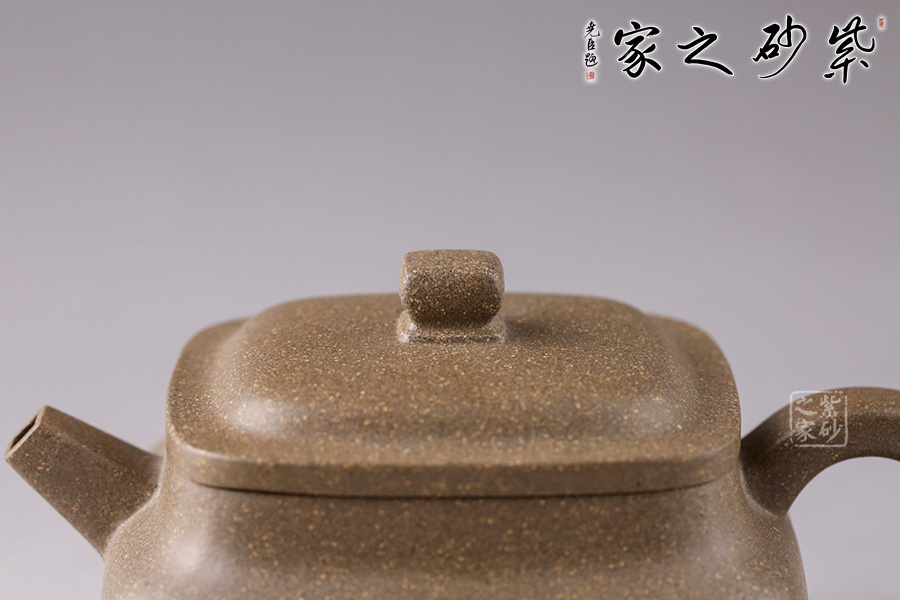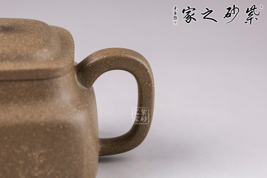 俗話說“一方頂三圓”,制作工藝十分難,非常考驗(yàn)老師制壺工藝。此作壺身的線條感、弧度感都很有特點(diǎn)。器朗神俊、意氣高昂的壺身,呈四方體,鼓腹飽滿,接縫處為圓角處理,渾樸有致。高壺頸,直嘴出水流利,耳形端把提捏稱手。 方圓變化,進(jìn)退自如。處巧若拙,處動(dòng)若靜。