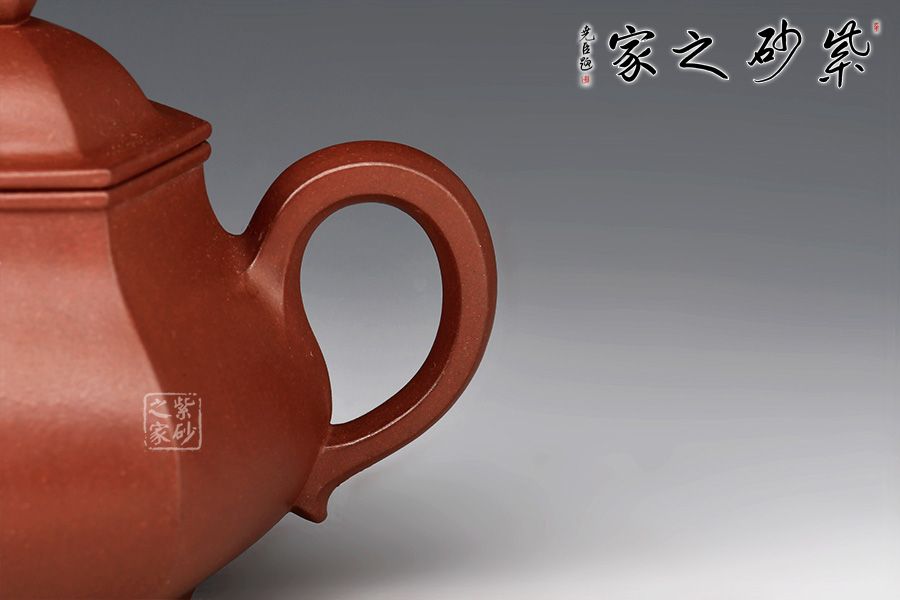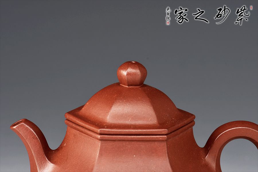 此壺名為六方秋水,是一款經(jīng)典的六方壺型,器型大方得體,穩(wěn)重而大方,最考驗(yàn)老師制壺工藝。壺身稍微加高,以六方位形,弧線與棱角的結(jié)合堪稱剛?cè)岵?jì),剛毅而不失柔美,壺身、壺口、壺蓋、壺鈕均為六方形,六方取六六大順之美意,如意吉祥的意思。 壓蓋式壺蓋,子母線緊密貼合,壺蓋無(wú)論往哪個(gè)方向轉(zhuǎn)度皆可與壺身相對(duì)應(yīng),暗接相連,過(guò)度自然。二彎流壺嘴順暢利落,耳形端把粗細(xì)過(guò)渡十分別致,持握舒適稱手。一粒飽滿的壺鈕圓中帶方,整個(gè)作品無(wú)處不透漏著六方的效果。