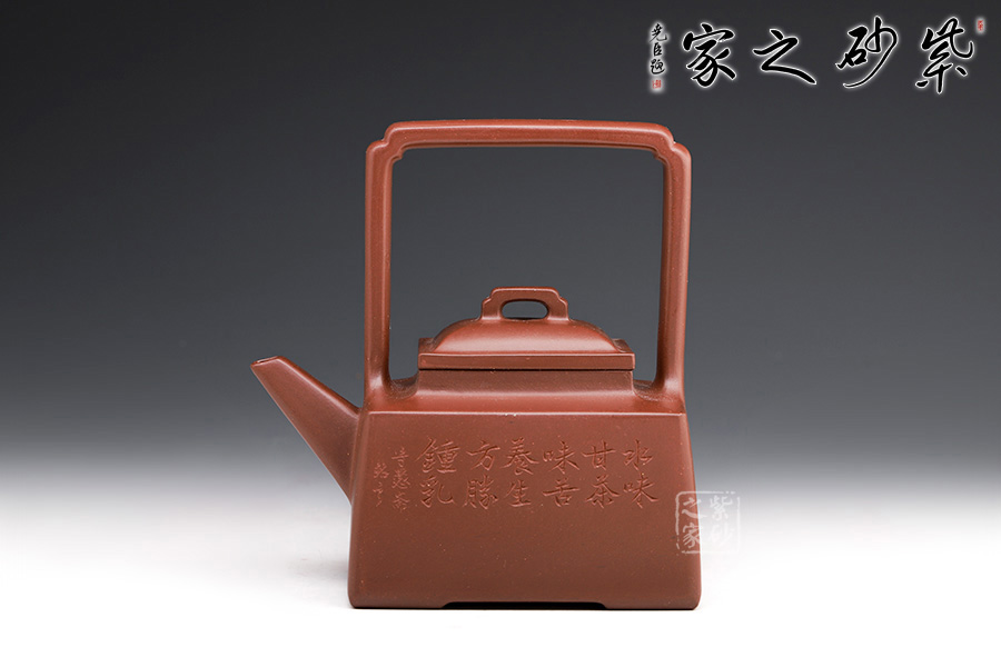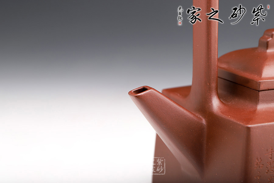 此壺創(chuàng)新十足,將提梁與方樽相結(jié)合,棱角分明,線條挺括,別有一番韻味。