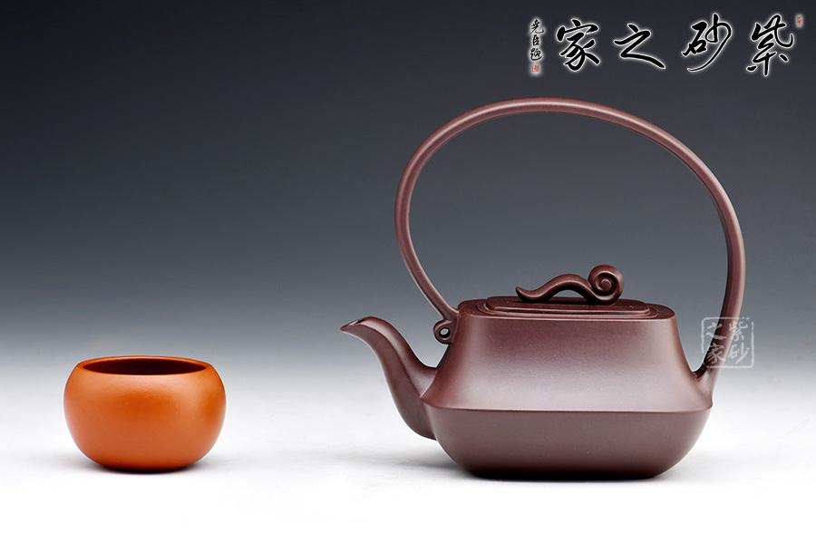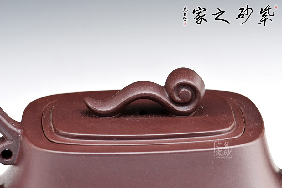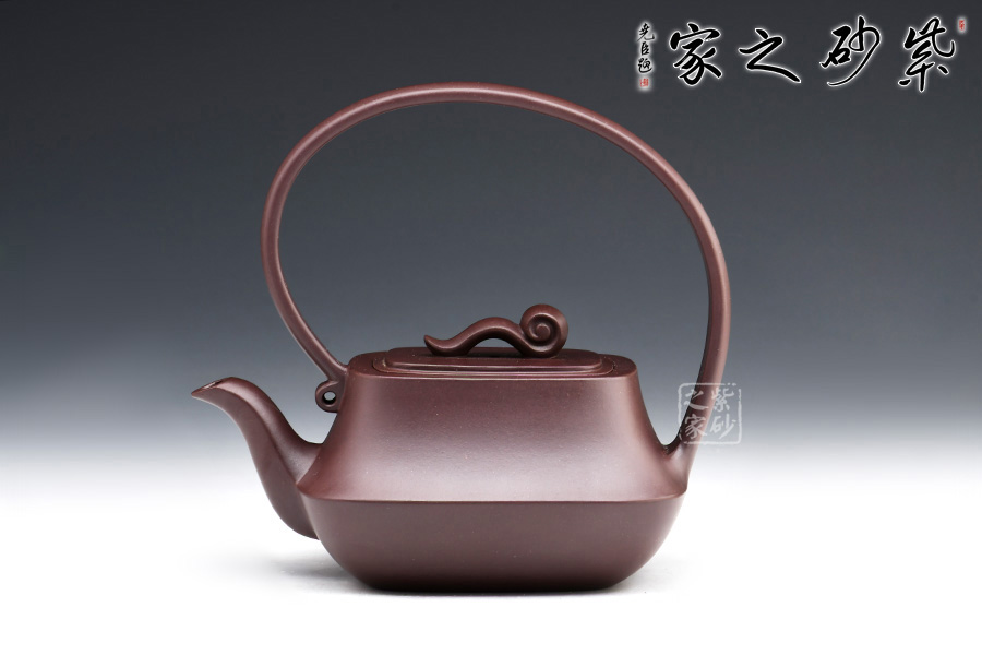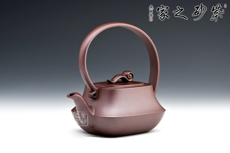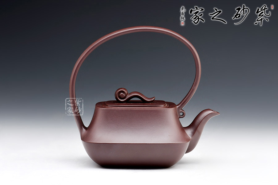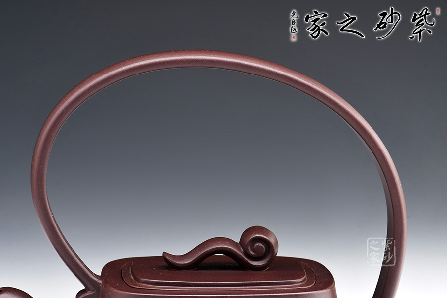 此壺造型獨特,創(chuàng)意新穎,泥質(zhì)醇厚,色澤古穆。該壺從壺嘴,到提梁,再到壺嘴,仿若一條曲線婉轉(zhuǎn)而成,輪廓清晰,線條流暢柔和,飄逸靈動。此壺猶若一位婀娜多姿的女子在翩翩起舞,清新動人。壺身方中帶圓,穩(wěn)重踏實,壺蓋如意祥云裝飾,點題壺名。該壺實用性極強,且具有藝術(shù)欣賞價值。