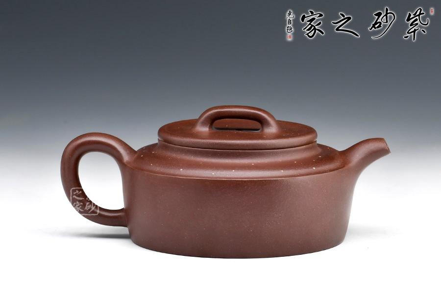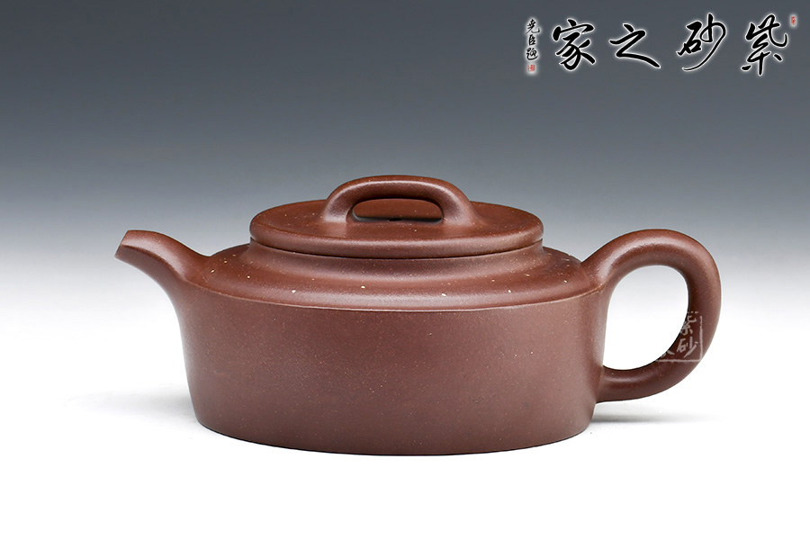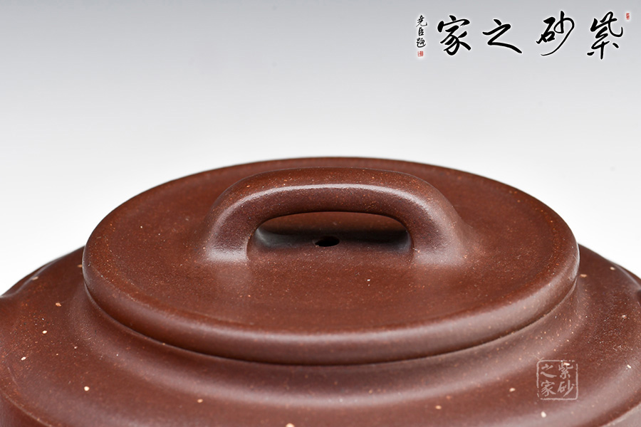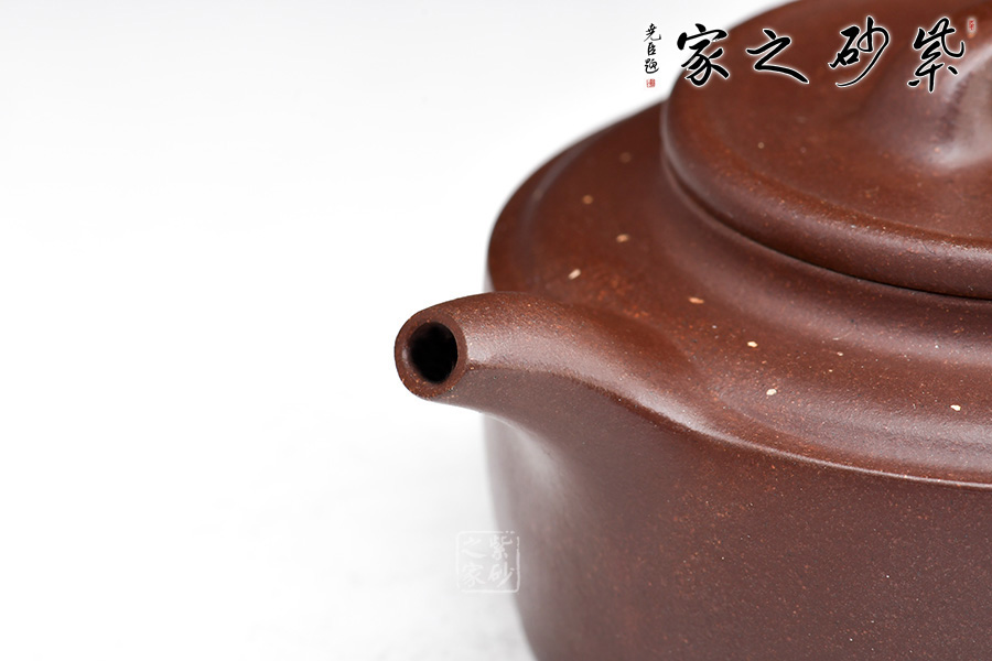此壺扁直筒,周身渾圓,端莊古樸,大氣穩(wěn)重,線條古樸流暢,給人一種簡單大方,干脆利落之感,壺肩棱線分明延申至壺流,彰顯了此壺的力度之美。點(diǎn)砂工藝鋪上星星點(diǎn)點(diǎn),猶如混元宇宙中的銀河一般,點(diǎn)題星辰。